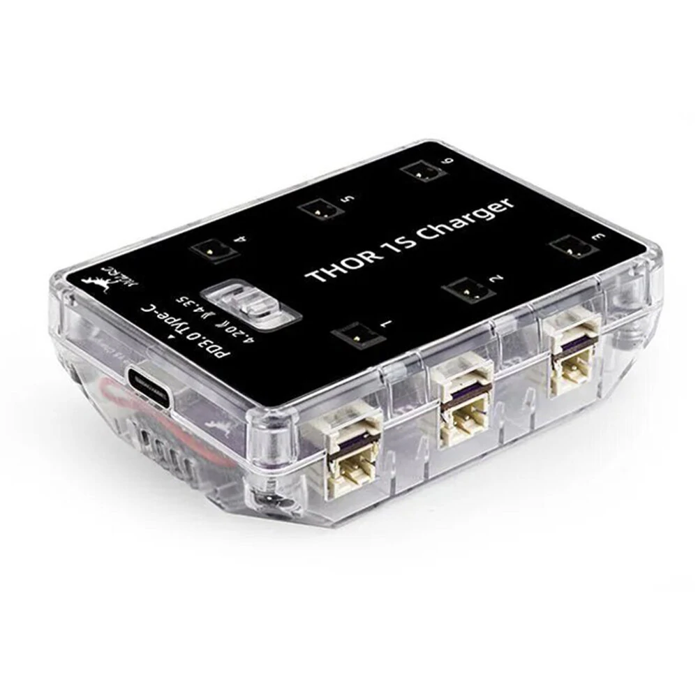 نقاط البيع:* تدعم المحطة الطرفية للإدخال بروتوكول شحن سريع PD3.0/QC3.0/BC1.2 ، ومحول الشحن السريع سوبر عالي الطاقة بقوة 65 واط اختيارييدعم بطاريات الليثيوم متعددة الواجهات PH2.0 و MX2.0 و A30 و BT2.0 موصلاتيمكن شحن 6 بطاريات بمنافذ 800 مللي أمبير - 1 أمبير في نفس الوقتيدعم بطاريات الليثيوم العادية 4.2 فولت وبطاريات ليثيوم LIHV العاملة بجهد 4.35 فولت وبالتالي يوفر تحويل جهد الشحنمراوح تبريد ومشتت حراري مدمج لتحسين كفاءة الاستخدامتخصيص:النوع سيالجهد الكهربائي المدخل: PD3.0 Type C 12Vطاقة الإدخال: حد أقصى 65 واطنوع البطارية: LiPo / LiHvالحد الأقصى للتيار الحالي لشحن قناة واحدة: (800 مللي أمبير - 1 أمبير)دعم واجهة الشحن: PH2.0 و MX2.0 و A30 و BT2.0جهد قطع الشحن: بطارية ليثيوم منخفضة الجهد 4.20 فولت (±0.5 فولت) وبطارية ليثيوم عالية الجهد 4.35 فولت (±0.5 فولت)الأبعاد (L*W*H): 68 مم × 48 مم × 22 ممالوزن: 51.14 غرامقائمة إصدار الحزمة والشحن:محول 1x 1Sمحول طاقة HGLRC-PD3.0 بمقبس واحد (محول شحن 65 واط + كابل شحن سريع مزدوج C بطول 1 متر)1x بطاقة دليل التعليماتملصق شعار 1x