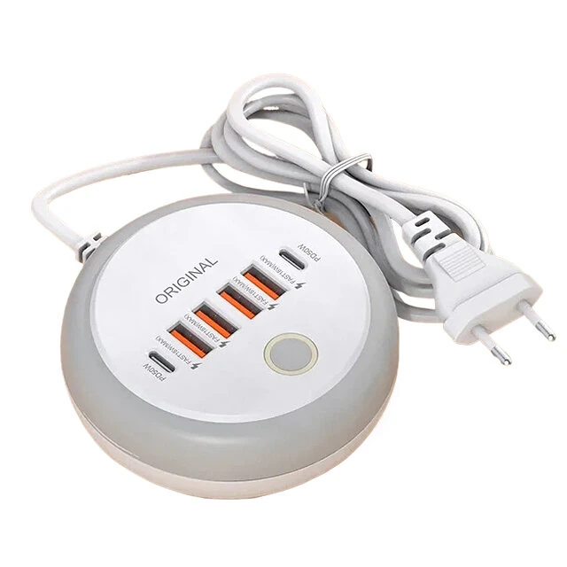 Özellikler:Ad: Yaratıcı Yuvarlak PD50W Priz Şarj CihazıRenk: BeyazŞarj Protokolü: PDŞarj Cihazı Başvuru Formu: 4USB + 2TYPE-CEk Fonksiyon: Dokunmatik Gece LambasıÖzellikler:1. Çok fonksiyonlu Şarj: PD50W şarj cihazı, birden fazla cihazın aynı anda verimli bir şekilde şarj edilmesini sağlayan 4 USB-A portu ve 2 Type-C PD portu ile donatılmıştır.2. Hızlı ve Akıllı Şarj: 50W yüksek güç çıkışı ile bu şarj cihazı, şarj sürelerini önemli ölçüde azaltır. Dahili akıllı çipler, belirli cihazlara uyacak şekilde çıkışı otomatik olarak ayarlar ve olası hasarı önler.3. Eşsiz Dairesel Tasarım: Yenilikçi dairesel tasarım kompakt ve çekici olup, ısı dağılımını artırmakta, şarj sırasında ısı birikimini azaltmakta ve ürünün ömrünü uzatmaktadır.4. Dokunmatik Gece Işığı: Dokunmatik hassasiyetle entegre edilmiş gece ışığı, yumuşak aydınlatma sağlar, sert parlamadan kaçınır ve karanlıkta şarj portlarını tanımlamayı kolaylaştırır.5. Kapsamlı Güvenlik Koruması: Aşırı şarj, aşırı voltaj, aşırı akım ve aşırı sıcaklık korumalarını içeren çoklu güvenlik korumalarına sahiptir ve güvenli ve kaygısız kullanım sağlar.Paket içeriği:1x Yaratıcı Yuvarlak PD50W Priz