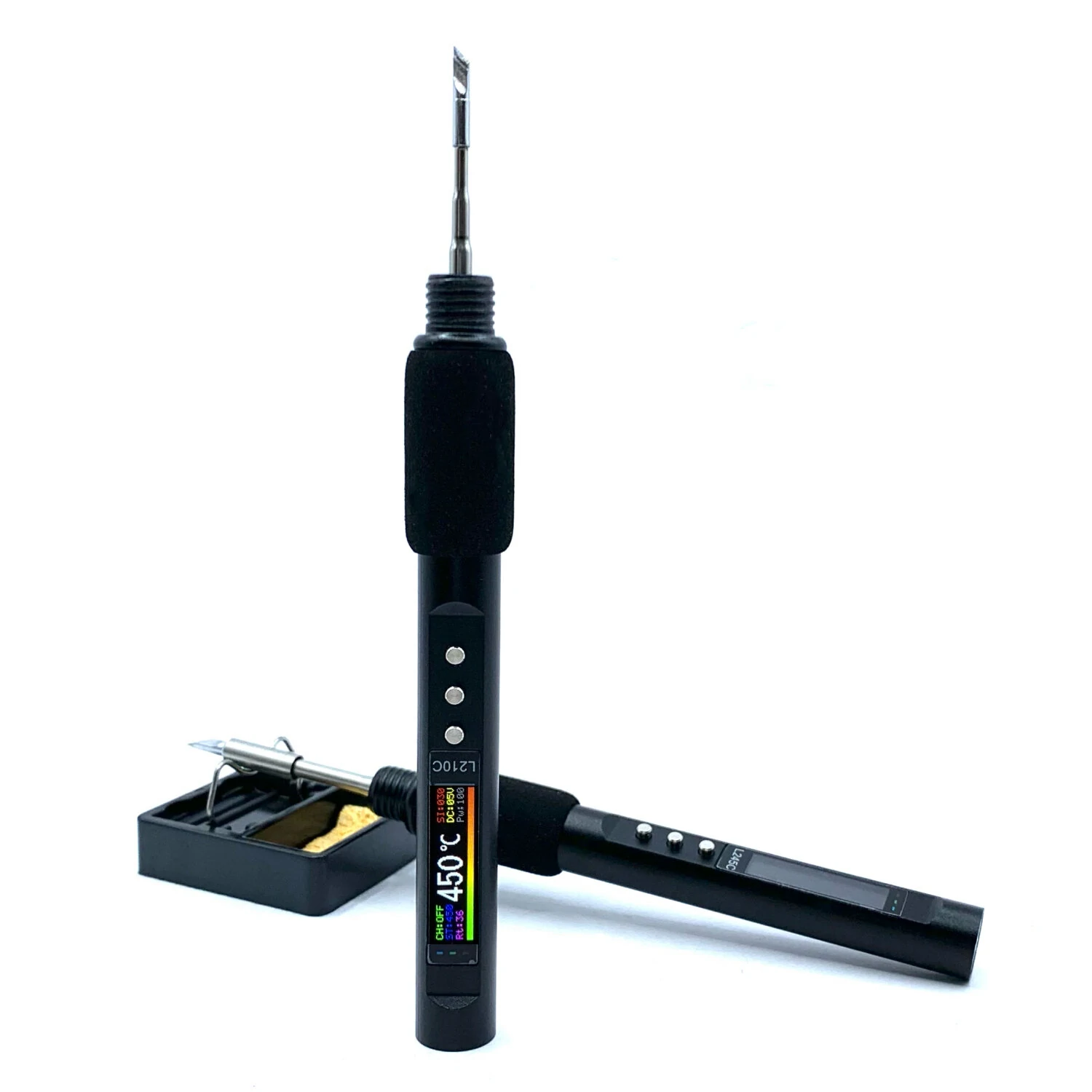 Recursos:mso-bidi-font-family: 'Times New Roman'; font-size: 10.5000pt; mso-font-kerning: 1.0000pt;mso-bidi-font-family: 'Times New Roman'; font-size: 10.5000pt; mso-font-kerning: 1.0000pt;Tela colorida TFT de alta resolução: Equipado com uma tela colorida TFT de 0,99 polegadas, este mini ferro de solda exibe informações críticas de relance, incluindo status de temperatura, temperatura definida, voltagem da fonte de alimentação, temperatura interna, temperatura real do elemento de aquecimento e porcentagem de potência. Esta exibição abrangente de informações melhora a experiência do usuário e a eficiência operacional.Desempenho de aquecimento superior: Com uma potência máxima de saída de 100W, este ferro de solda de alta potência oferece aquecimento extremamente rápido e tempos de recuperação rápidos. Isso o torna altamente eficiente para várias tarefas de soldagem, garantindo que você não precise esperar muito tempo para concluir seu trabalho.Construção robusta em liga de alumínio: O ferro de soldar apresenta um corpo em liga de alumínio usinado em CNC que é não apenas esteticamente agradável, mas também altamente funcional. O design resistente garante que o elemento de aquecimento mantenha um bom contato sem trepidações durante o uso, proporcionando uma experiência de soldagem estável e confiável.Compatibilidade excepcional e potência ajustável: Este ferro de soldar foi projetado para ser compatível com a maioria dos carregadores e bancos de energia no mercado,graças à fun