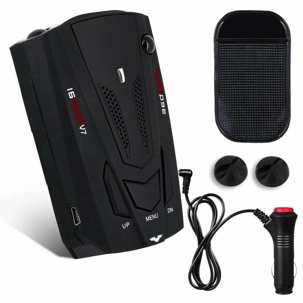 Характеристики:Название: Мобильный радарный спидометр, установленный на машинеМодель: V7Color: Black / Red / BlueРазмер: 5,7 x 3,3 x 3,3 дюймаТекущий: 1000мАНапряжение: 12В X-BAND: 10.525GHz +/- 100MHz, detectable distance: 1500-2500mK-BAND: 24.150ГГц +/- 175МГц, 1200-2500мKU-ДИАПАЗОН: 13,450ГГц +/- 125МГц, 450-1500мKA-BAND: 34.700GHz +/- 1300MHz, 800-1500mVG-2: 11.150ГГц +/- 410МГцWireless duplex transmission frequency: 2.4GHz 410MHzFunction Operation:ВВЕРХ": Громкость будет увеличена нажатием этой кнопкиMEU": Экран станет ярче при нажатии этой кнопки"DN": Volume will be reduced pressing this button & to shift between the city mode and high way mode, it will change the language to Russia or English if press this button over 5 times.Особенности:1. 360-degree detection: Provides all-around protection from radar signals in every direction.2. Голосовое предупреждение: Оповещает водителя понятными голосовыми уведомлениями, обеспечивая безопасное вождение.3. Высокая чувствительность: Обнаруживает радарные сигналы на больших расстояниях, давая вам больше времени для реакции.4. Простая установка: Просто подключите к питанию автомобиля для мгновенной настройки.5. Регулируемая яркость: Позволяет настроить отображение по вашему усмотрению для более ясного просмотра.Пакет включает в себя1 x Радар-детектор1 x сетевой шнур1 x Антискользящий коврик1x Руководство пользователяПримечание: Пожалуйста, убедитесь, что у вас есть хотя бы 1 дюйм свободного пространства для установки.