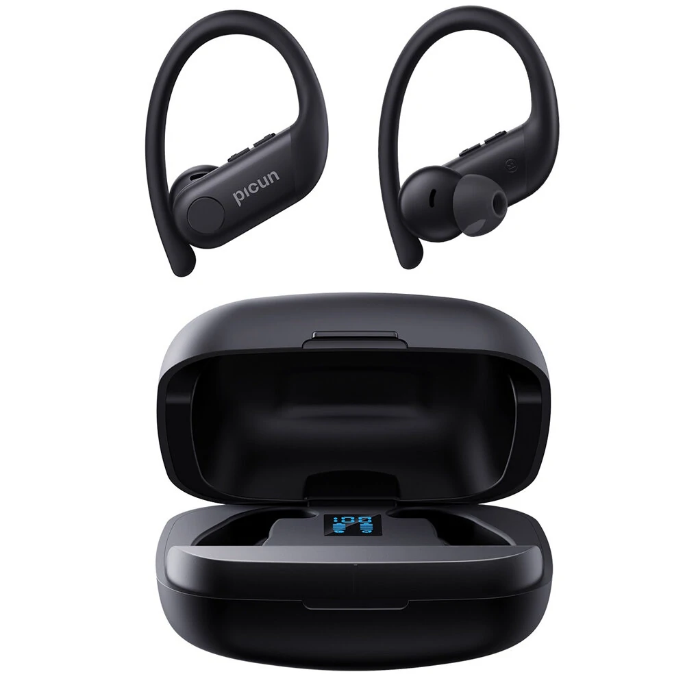 Specifiche:MarchioPicunModelloA5ColoreNero, KhakiTipo di indossamentoEarhooksMicrofonoSìProfili supportatiHSP/HFP/A2DP/AVRCPSupporto alla decodifica audioAAC, SBCDistanza di trasmissione33 piedi (10m)Risposta in frequenza20-20K HzCapacità della batteriaScatola di ricarica: 1600mAHTempo di ricarica (h)2hTempo della musica6-10hImpermeabileIPX5Interfaccia di ricaricaType-CPacchetto Incluso:1* Auricolari Picun A5 TWS con scatola di ricarica1* Cavo di ricarica1* Manuale3 paia di auricolari