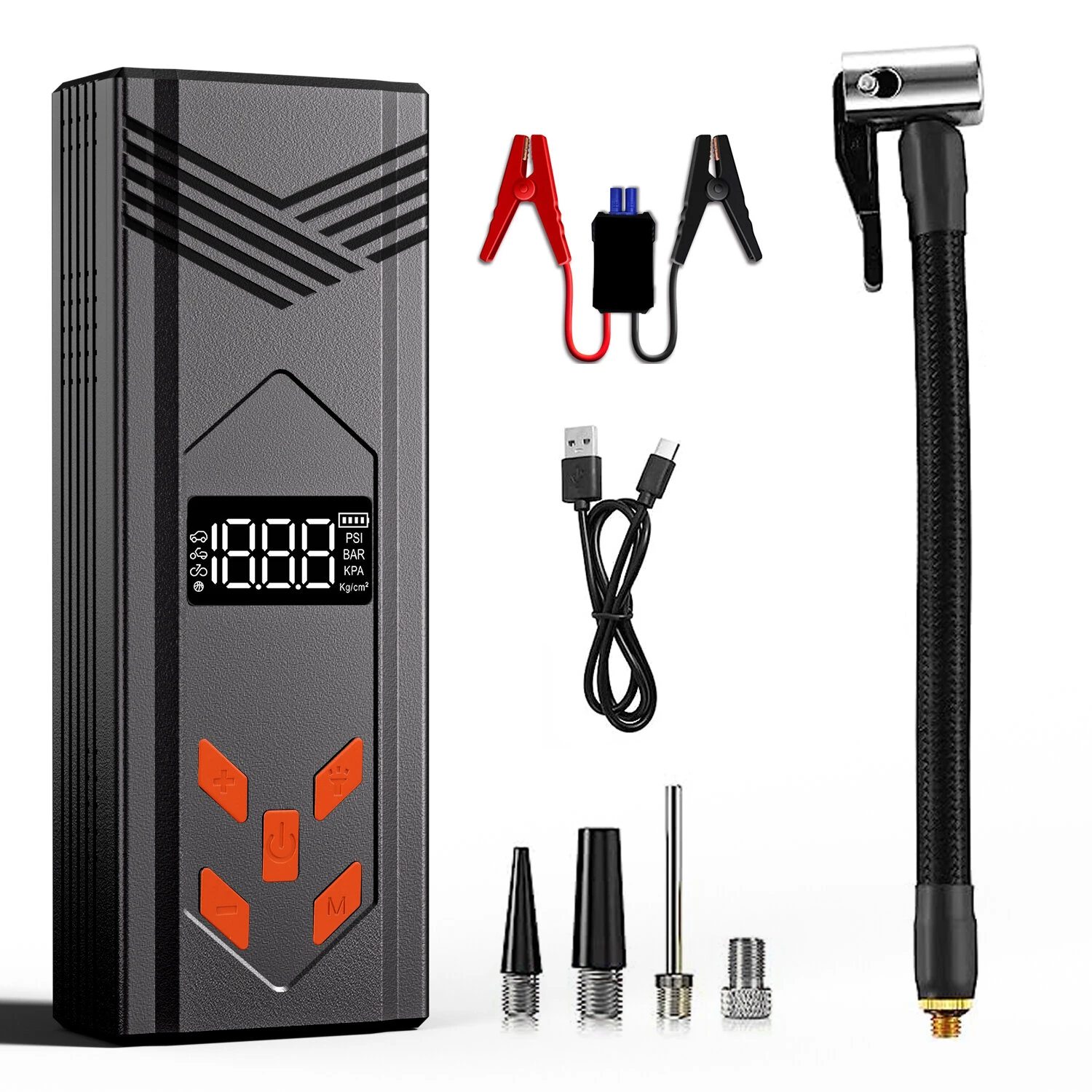 Özellikler:Model: YD06Ürün Adı: 2'si 1 Arada Marş Motoru ve Lastik pompası Renk: SiyahPil Kapasitesi: 8000mAh/3.7V/29.6Wh USB Çıkışı: 5V2A Tip C Giriş: 5V2A Boyut: 21.7*7.8*4.5cm / 8.54*3.07*1.77 inç Şarj Süresi: 5-6 saat Barometrik Birimler: PSI, Bar, Kg/c㎡, Kpa Ampul Tipi: 0.5W LED Uzun Parlak, SOS, Patlama Flaş Özellikler:1. 2 IN 1 Sıçrama Başlatıcı ve Lastik pompası: Bu lastik pompası, aynı zamanda bir sıçrama başlatıcısı olarak da hizmet verme özelliği sunar ve kullanıcıların lastiklerini şişirmenin yanı sıra araçlarını kolaylıkla çalıştırmasına olanak tanır. Bu çift işlevsellik ürüne esneklik ve değer katmaktadır.2. LED Işık: Lastik şişirme cihazı, acil durumlarda veya düşük ışık koşullarında aydınlatma sağlayan bir LED ışıkla donatılmıştır. Bu özellik, kullanıcılar için güvenliği ve konforu artırarak, onlara hava pompasını karanlık ortamlarda bile kolayca görebilme ve çalıştırabilme imkanı sağlar.3. LCD Ekran: Lastik pompası, basınç okumaları ve batarya durumu gibi net ve okunması kolay bilgiler sunan bir LCD ekran içerir. Bu ekran doğruluk sağlar ve kullanıcıların şişirme sürecini etkili bir şekilde izlemesine olanak tanır.4. Güç Kaynağı Olarak Kullanılabilir: Bu lastik pompasının aynı zamanda bir güç kaynağı olarak da hizmet verebileceği unutulmamalıdır, bu sayede kullanıcıların akıllı telefon veya tablet gibi elektronik cihazlarını şarj etmeleri mümkün olur. Bu ek özellik pratiklik sağlar ve acil durumlarda veya açık hava etkinliklerinde yedek bir güç kaynağı olarak