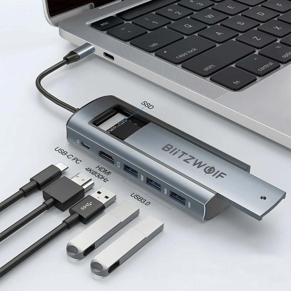 BlitzWolf BW-Neo TH13 Pro 6-in-1 Docking İstasyonu, SSD Kart Yuvası Desteği ve Çift Protokol M.2https://www.banggood.com/BlitzWolf-BW-Neo-TH13-Pro-6-in-1-Docking-Station-with-SSD-Card-Slot-Support-M_2-Dual-Protocol-Hard-Disk-3+USB-3_0-PD100W-4K-at-30Hz-HD-for-Phone-TV-Tablet-Laptop-p-2008607.html?cur_warehouse=CN&ID=6325811&rmmds=searchÖzellikler: MarkaBlitzWolfModelBW-NEO TH13 Pro (M.2 Çift Protokol)、BW-NEO TH13 (M.2 SATA Protokolü)SSD Kart YuvalarıM.2 SATA Protokolünü DesteklerRenkGümüşÖlçü131.17(U)*20.77(G)*49.85(Y)mmTel Uzunluğuyaklaşık 190mm MalzemeAlüminyum Alaşımlı KasaBağlantı elemanıUSB-CArayüz3 * USB 3.0 Bağlantı Noktası1*HD Portu1*PD Şarj Portu1*SSD Kart YuvasıHD Ekran Çıkışı4K'ya kadar @ 30Hz (3840 * 2160)Güç Çıkışı5V-20V/5APD Power InPD3.0 hızlı şarj protokolünü destekler, maksimum 100W desteği sağlarUSB 3.0 Aktarım Hızı5Gbps destekli, veri senkronizasyonu için 3 portDestek Sistemiİşletim Sistemi、WINGDOWS、LINUXÇalışma Sıcaklığı -10°C-45°C (±5°C)UyumlulukTYPE-C arabirimini destekleyen çoğu dizüstü bilgisayarla uyumluÖzellikler:1. Bu 6'lı bağlantı noktası, bir tane Type-C arabirim aracılığıyla USB cihazları, HD ekranlar ve SSD depolama dahil olmak üzere birden çok cihazı bağlamanıza olanak tanır.2. USB 3.0 teknolojisi ile hızlı veri aktarım hızlarının ve sorunsuz performansın keyfini çıkarın.3. HD port, 4K çözünürlüğü destekleyerek, olağanüstü bir görüntüleme deneyimi için etkileyici görsel netlik ve canlı renkler sunar.4. PD portu, cihazlarınızın hızlı şarj olması