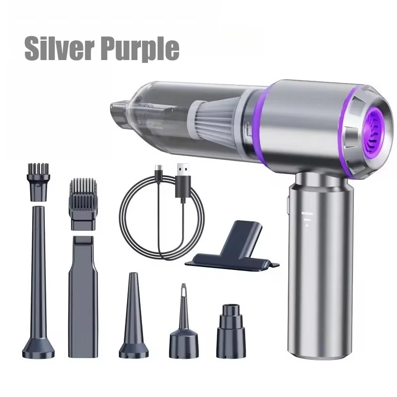 Spécifications:Nom du produit : Aspirateur à mainMatériau du produit : ABSCouleur (optionnel): violet argenté / noirMoteur : moteur sans balais mis à jourDegré de vide: 15000 paRated speed: 25500rpmCapacité de la batterie lithium : 3 * 2000mAhMode de charge : câble de charge Type-CBruit : ≤ 52dBTempérature de fonctionnement : -20 ℃~+50 ℃Poids: 480gFonctionnalités:1. PAspiration PuissanteDélivre jusqu'à 15000Pa de puissance d'aspiration,s'attaquant sans effort à la saleté,à la poussière et aux débris dans votre voiture et chez vous.2. Confort sans filProfitez de la liberté du nettoyage sans fil avec un design léger,parfait pour des nettoyages rapides en déplacement.3. Outil de nettoyage polyvalentIdéal pour les intérieurs de voiture,le rembourrage et les espaces restreints,ce qui en fait un incontournable pour l'entretien de la maison et du véhicule.4.Trois réglages de vitessePersonnalisez votre expérience de nettoyage avec des réglages de vitesse ajustables pour gérer différentes surfaces et désordres.5.Affichage du niveau de batterieSurveillez facilement l'état de la batterie,en vous assurant de savoir quand la recharger.Forfait inclus:1x Aspirateur8x Accessoires1x Ligne de chargement1x Manuel d'utilisation
