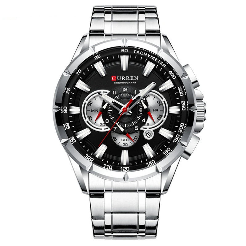 Spécifications:Marque: CURRENMouvement: QuartzÉtanche : 30 ATMLargeur du cadran:48mmÉpaisseur du cadran : 14 mmLargeur du bracelet : 24 mmLongueur de la montre : 240 mmMatériau du bracelet: Acier inoxydableMatériau du boîtier: AlliagePoids: 172gFonctionnalités:1. Mouvement à quartz japonais de haute qualité avec affichage analogique,offrant un maintien précis du temps.2. Design luxueux et simple, date automatique3. Étanche : 99FT / 30M Résistance normale à l'eau. Résiste au lavage des mains,à la pluie et aux éclaboussures d'eau,mais ne convient pas pour la douche,la plongée,le snorkeling ou les travaux liés à l'eau.4. Montre multifonction. Toutes les aiguilles fonctionnent. Cette montre a une fonction chronographe.Le package comprend: 1 x Montre