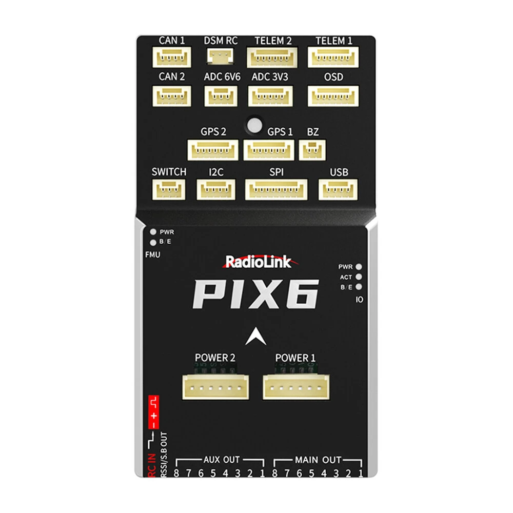 사양:브랜드: Radiolink모델: PIX6 비행 컨트롤러옵션 모드: GPS 포함 / GPS 미포함선택 가능 버전 : 비행기 헬리콥터용 (RC 비행기, 헬리콥터, RC 자동차, RC 보트와 호환 가능)멀티 로터 콥터용 (호환 가능)멀티로터 콥터하드웨어 사양주 프로세서: STM32F765VIT6Coprocessor: STM32F100센서자이로 및 가속도계 : BMI088, ICM-42688E-나침반: IST8310기압계: SPL06RAM 메모리 : 512 KB플래시 메모리: 2MBFRAM: 32KB, FM25V02A커넥터채널 출력: 16채널 출력 (메인 출력: 8채널; 보조 출력: 8채널)커넥터: POWER1,2 포트: HY-6P; DSM RC 포트: XH1.25-3P; 디버그 포트: 1.0-8P; 기타 포트: GH1.25CAN 포트: 2DSM RC: 1Mavlink UART: 2ADC: 3.3V*1&6.6V*1OSD: 1GPS UART: 2버저 : 1안전 스위치: 1I2C 포트: 1SPI 포트: 1USB 포트: 1전원 포트 : 2전력1: 전압 및 전류 모니터 입력(아날로그)Power2: SMBUS / I2C 전원 모듈 입력 (I2C)Type-C 포트: 1SD 카드 포트: 1FMU 리셋: 1디버그 포트: 1I/O 재설정 버튼: 1신호 (RC In): PPM/SBUS비디오 전송: HD 디지털 및 아날로그 비디오 전송이 지원됩니다RSSI 신호 입력: PWM/3.3VRSSI 신호 출력: 지원OneShot/DShot: 지원OSD 모듈: 지원, OSD 모듈 통합ESC 프로토콜: PWM/OneShot/DShotNeopix Led 연결: 지원그리퍼 기능: 지원전원 모듈 사양RTK: 지원무게: 전선 없이 24.5g (0.86oz)입력 전압 : 2-12S최대 감지 전류: 90A출력 전압 (BEC): 5.3V±0.2V현재 출력 (BEC): 2A단일 ESC 최대 감지 전류: 22.5A적응 가능한 모델비행기/2-8 코퍼/헬리콥터/차/보트/VTOL/잠수함/레이더트래커/로봇/잔디깎이사양크기: 95.5*51.5*15mm무게: 50g (전선 제외)USB 전압: 5V±0.3V작동 온도: -30~85℃특징:모든 모델을 위한 오픈 소스 비행 컨트롤러.안정성 향상을 위한 이중 내장 자이로.3. 고급 비행 기능을 위한 ArduPilot과(와) 호환됩니다.4. 고성능 F765 비행 컨트롤러.설치 및 구성이 쉽습니다.포함된 패키지:1x PIX6 (비행 제어)1x 전원 모듈 (2-12S)1x 안전 스위치 1x 부저2x 양면 접착 테이프1x 4G TF (MicroSD) 카드2x CAN1/2 포트 연결 케이블1x DSM RC 포트 연결 케이블1x ADC 6V6 포트 연결 케이블1x ADC 3V3 포트 연결 케이블2x TELEM1/2 포트 연결 케이블1x OSD 포트 연결 케이블2x GPS1/2 포트 연결 케이블1x 스위치 포트 연결 케이블1x I2C 포트 연결 케이블1x SPI 포트 연결 케이블1x POWER1 포트 연결 케이블1x POWERZ 포트 연결 케이블1x 디버그 포트 연결