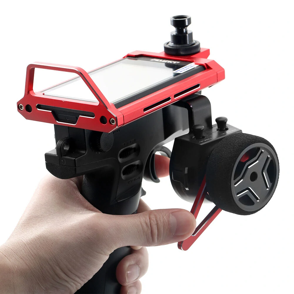 Kit de modificação da roda manual do transmissor de rádio. Ferramenta controlada com uma mão para o controle remoto Flysky NB4/NB4+/Noble Lite/Pro. Acessórios DIY.Especificações:Item: Modificação da roda manual do transmissor de ferramentas controlado com uma mãoMaterial: Liga de alumínioPeso: 24.5gCor: Azul/Vermelho/Preto (Opcional)Recursos:1. Instalação fácil: O kit de modificação é fácil de instalar no controle Flysky NB4/Noble Lite/Pro.2. Operação conveniente com uma mão: Com essa modificação, os usuários podem operar o controle com apenas uma mão, permitindo um controle mais fácil durante o jogo.3. Design elegante: O kit de modificação adiciona um toque elegante ao controle, fazendo-o se destacar da multidão.4. Funcionalidade dupla: Ao operar o controlador com uma mão, os usuários também podem segurar o telefone na outra mão para capturar vídeos ou tirar fotos.5. Construção em metal durável: O kit de modificação é feito de metal de alta qualidade, garantindo sua durabilidade e longevidade.Nota: Pacote incluído:1x Kit de Modificação