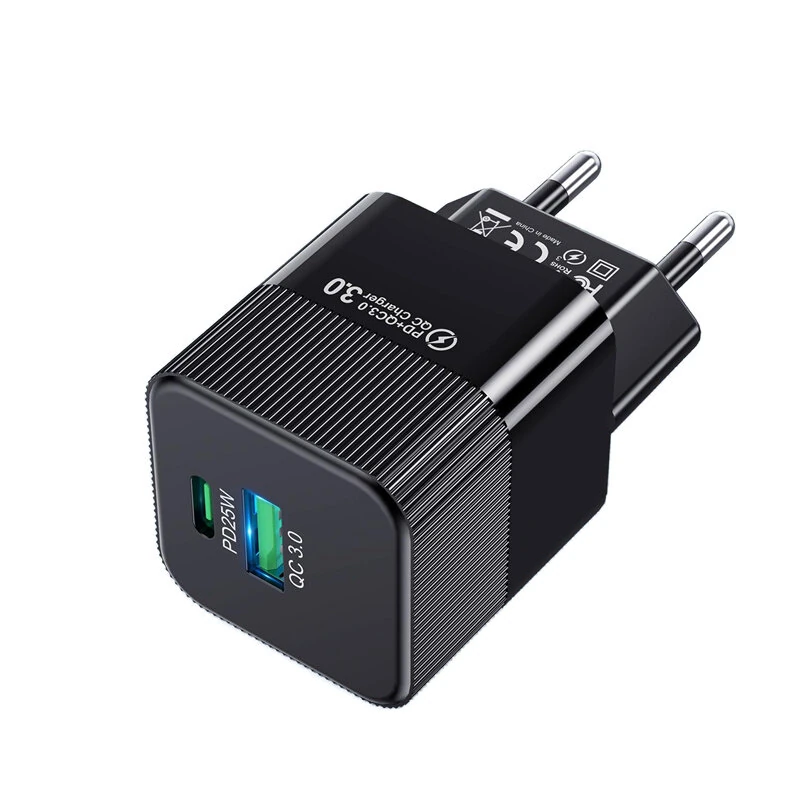 Specifications ModelBK316ColorBlack White Blue YellowMaterialPC ABSSize72 34 34mmInterfaceUSB A USB CInputAC100 240V 50 60Hz 0 5AOutputUSB C PD25W 5V 3A 9V 2 78A 12V 2AUSB A QC3 0 3 6 6 5V 3A 6 5 9V 2A 12V 1 7AProtocolsPD QC3 0TypeEU PlugPower25WFeatures 1 Dual USB ports The charger comes with USB A and USB C ports allowing you to charge two devices simultaneously 2 Fast charging The USB C port supports Power Delivery PD 25W providing quick charging for compatible devices 3 Universal compatibility The charger is compatible with AC100 240V input making it suitable for use worldwide 4 Compact size With dimensions of 72 34 34mm the charger is portable and easy to carry 5 Multiple colors Available in black white blue and yellow you can choose the color that suits your style Package includes 1x BK316 Charger