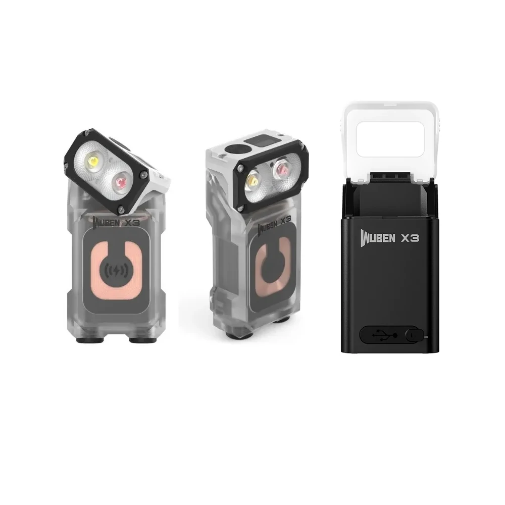 Wuben X3 é uma lanterna LED EDC multifuncional com cabeça rotativa a 180 graus, peso ultraleve de 70g, carregamento sem fio, base magnética, LEDs duplos (vermelho e branco), indicador visual da bateria, 700 lumens e múltiplos modos de iluminação. É uma ótima ferramenta para atividades ao ar livre, segurança doméstica e trabalho noturno.Especificação:NomeLanterna de chaveiro mini LED WUBEN X3 Owl 700LMLEDLEDs duplos: luz branca LH351D + luz vermelha SST10Lumen700LMIntervalo120MIntensidade do feixe2590CDModosTurbo, Alto, Médio, Baixo, Estroboscópio, SOS, Alto, BaixoModo de saída700 lm, 150 lm, 50 lm, 1 lm, 700 lm, 150 lm, 150 lm, 1 lmResistência ao impacto1mImpermeávelIP65Tamanho70x35x21mmPeso70gRecursos:- Cabeça giratória de 180°A cabeça da lâmpada pode girar em torno do eixo, alcançando um ajuste completo de 180° em todas as direções, permitindo que você ajuste o ângulo de acordo com suas preferências sem esforço.- LEDs duplos (vermelho e branco)Apresentando o LED LH351D de alto Índice de Reprodução de Cores (IRC) e o feixe de luz vermelha da lâmpada Luminus SST10 a 650nm.Brilha no escuro - Posicionamento fácil a qualquer momento (versão branca)A versão branca do Wuben X3 utiliza um material que brilha no escuro, o que pode emitir uma luz fraca mesmo no escuro. Isso torna muito fácil localizar a lanterna em qualquer momento.- Carregamento sem fio, seguro e portátilO X3 é compatível com a maioria dos carregadores sem fio disponíveis no mercado. Basta colocar o X3 na caixa (ou