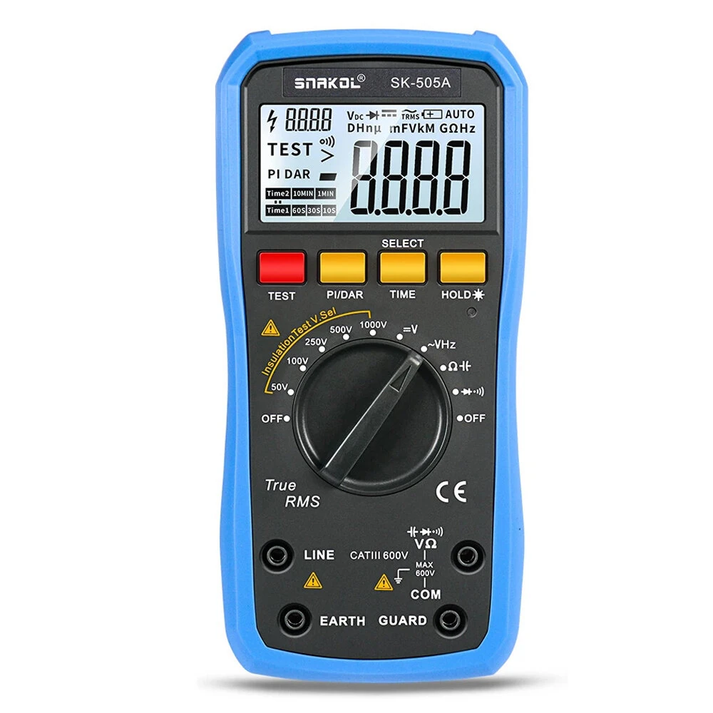 Özellikler:Marka: SnakolModel: SK-505AGerilim Aralığı: 50V, 100V, 250V, 500V, 1000VDirenç Ölçüm Aralığı: 0.05MΩ'dan 20GΩ'aÖlçüm Doğruluğu: ± (5% +5),± (3% +5),± (10% +5)Görüntü: Arka Işıklı LCDFonksiyonlar: Yalıtım Direnci,Voltmetre (AC/DC),Dijital Multimetre Özellikler:Çok yönlü ölçüm fonksiyonları: hem izolasyon direnci hem de voltaj ölçümünü mümkün kılar, AC/DC voltaj ve direnç okumalarını yüksek hassasiyetle destekler. Açık Arka Işıklı Ekran: Okunması kolay arka aydınlatmalı LCD ekran, düşük ışık koşullarında bile doğru okumaları garanti ederek net bir görünürlük sağlar. Geniş Voltaj Aralığı: Farklı test gereksinimlerini karşılamak için geniş bir voltaj aralığı (50V-1000V) sunarak çeşitli uygulamalar için uygun hale getirmektedir. PI/DAR Testi: Kapsamlı yalıtım testlerini sağlayan Polarizasyon İndeksi (PI) ve Dielektrik Absorpsiyon Oranı (DAR) ölçümleri için işlevler içerir. Kullanıcı Dostu Tasarım: Kullanımı kolaylık sağlamak için silikon koruyucu kılıf ve döner düğme ile donatılmış, sağlam koruma ve sezgisel işlem sunar. Paket içeriği:1 x Snakol SK-505A İzolasyon Direnci Test Cihazı2 x Kırmızı Metre Kalem1 x Siyah metre kalemler1 x Şarj Prizi3 x Timsah Klipsleri1 x Kullanıcı Kılavuzu1 x Tuval Çantamso-bidi-font-family:'Times New Roman';font-size:10.5000pt;mso-font-kerning:1.0000pt;mso-bidi-font-family:'Times New Roman';font-size:10.5000pt;mso-font-kerning:1.0000pt;mso-bidi-font-family:'Times New Roman';font-size:10.5000pt;mso-font-kerning:1.0000pt;