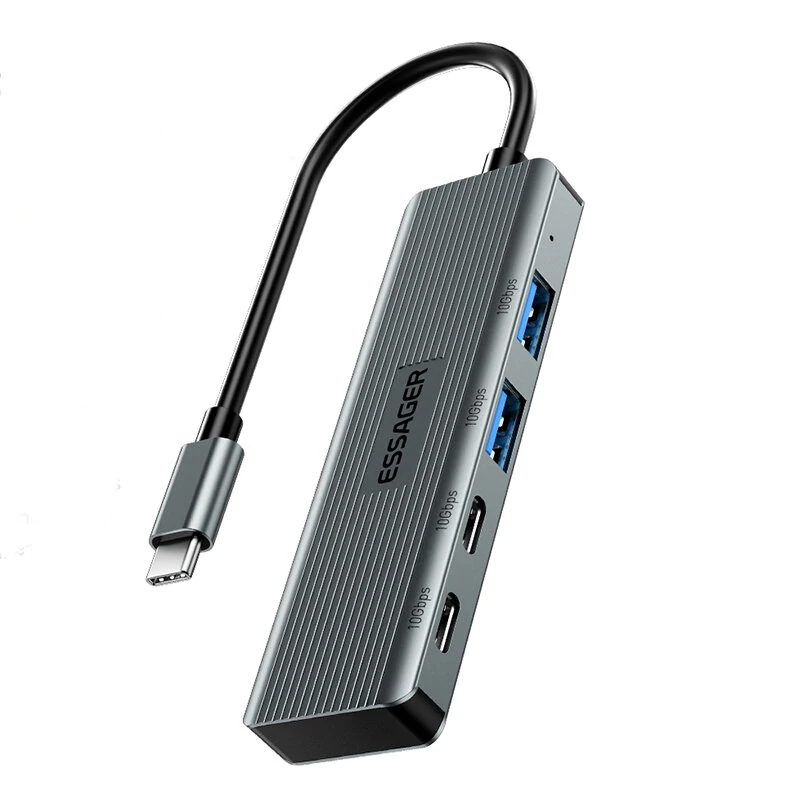 사양:제품 유형4 IN 1 타입-C 도킹 스테이션브랜드ESSAGER모델ES-HB02색깔회색재료알루미늄 합금입력 인터페이스타입-C출력 인터페이스USB-A*2+USB-C*2전송률10Gbps케이블 길이100mm크기 (가로 * 세로 * 높이)85*28.3*10mm특징: 1. 타오르는 빠른 속도:USB3.2 Gen2 표준은 최대 10Gbps의 고속 전송 속도를 제공하여 신속한 데이터 전송을 가능하게 합니다.2. 다목적 연결성:네 가지 다른 포트(타입-C 및 Type-A)는 노트북, 스마트폰 및 주변 장치와 원활한 연결을 가능하게 합니다.3. 소형 및 휴대용 디자인:경량 및 컴팩트한 디자인은 휴대가 용이하고 모든 작업 공간 설정에 완벽하게 맞아 편리함을 보장합니다.4. 드라이버가 필요 없는 플러그 앤 플레이:추가 드라이버가 필요하지 않습니다. Windows,Mac OS,Linux 및 Android를 포함한 다양한 운영 체제에 대한 플러그 앤 플레이 기능을 지원합니다.5. 프리미엄 빌드 품질:알루미늄 합금으로 제작되어 세련된 외관과 견고한 빌드 품질을 보장하며,장기간 사용에도 안정성을 유지합니다.포함된 패키지:1x ESSAGER ES-HB02 4-in-1 타입-C 독싱 스테이션