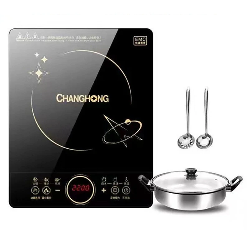 Spécification:Marque: CHANGHONGPuissance nominale: 2200WTension nominale: 220VFréquence nominale : 50/60HzFiche: fiche CNPlage de chauffage de la bobine en cuivre: 188 mmRéglage: 10 niveaux de chauffage, 8 modes de cuissonFonctionnalités:- Chauffage efficace: La plaque à induction haute puissance permet une cuisson rapide et efficace, ce qui vous fait gagner du temps et de l'énergie.- Conception intelligente : les fonctionnalités intelligentes de cet appareil garantissent un contrôle précis de la température et une répartition uniforme de la chaleur.- Options de cuisson polyvalentes : Avec ses capacités multifonctions, cette plaque à induction peut être utilisée pour frire, faire bouillir et plus encore.- Ensemble pratique : Le package comprend une casserole à soupe, vous offrant un ensemble complet de cuisson.- Fiche standard : Cette plaque à induction est livrée avec une fiche chinoise standard, ce qui la rend facile à utiliser et compatible avec la plupart des prises électriques.Forfait inclus:1 x Plaque à induction 1 x Marmite à soupe