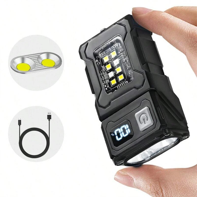 المواصفات:المادة الرئيسيةABSلونأسودالحجم8.1*4.5*2.6cmالوزن الصافيحوالي 70 جراممصباحCOB + SMD LEDطريقة الشحنشحن Type-C USB الميزات:1. دوران الرأس المتعدد الاستخدامات: تتميز مصباح المفتاح الصغير الخاص بنا بتصميم رأس قابل للتدوير يسمح بضبط زوايا الإضاءة. سواء كنت تقرأ أو تقوم بعمل إصلاحات أو استكشاف الأماكن المظلمة، يقدم هذا المصباح مرونة لا مثيل لها في الاستخدام بفضل إضاءته المرنة.2. الاستخدام متعدد الوظائف: هذا المشبك الخفيف للقبعة ليس مجرد مصباح يدوي ، بل هو أداة متعددة الاستخدامات تعمل كمشبك للقبعة ومصباح عمل ومشع للظهر ومصدر طاقة احتياطي لهاتفك ومصباح صدر. تم تصميمه لتلبية متطلبات الإضاءة والسلامة المختلفة لأي حالة.3. مؤشر مستوى الطاقة: كن على اطلاع في أي مكان مع ميزة عرض طاقة الضوء المحمولة. ستعرف دائمًا كم من البطارية متبقية ، مما يضمن ألا تُفاجأ أبدًا بفقدان مفاجئ للضوء.4. شحن USB من النوع C: الراحة هي الأساس مع مصباح الطوارئ الجيبي لدينا ومنفذ شحن USB من النوع C. استمتع بشحن سريع وسهل ، مما يجعله مثاليًا للأشخاص الذين يتحركون.5. بطارية طويلة الأمد: مجهزة ببطارية سعة عالية، توفر مصباحنا المصغر القوي إضاءة مستدامة وثابتة. تم بناؤه ليدوم طوال مغامراتك، مضمونًا لك الإضاءة التي تحتاجها عند الحاجة إليها.الحزمة تشمل:1 x مصباح يدوي1 × سلك شحن USB ملحوظة:نظرًا لاختلاف الشاشة وتأثير الإضاءة ، قد يكون لون العنصر الفعلي مختلفًا قليلاً عن اللون المعروض على الصور. شكرًا لك!يرجى السماح للانحراف في القياس 1-2 سم بسبب القياس اليدوي.