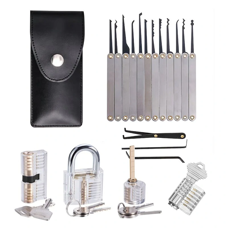 Fonctionnalités:Cadenas de pratique professionnelle : Equipés de quatre cadenas transparents, ces outils offrent une formation optimale pour les serruriers, leur permettant d'observer les mécanismes internes en action.Matériau de haute qualité : Les outils sont fabriqués en acier à ressort durable, ce qui garantit une longévité et une fiabilité lors de leur utilisation.Outils de mise en tablettes de précision : Dix outils de mise en tablettes d'une épaisseur de 0,18 mm sont inclus, conçus pour exploiter les défauts mécaniques et les tolérances dans les conceptions de loquets de certaines marques et modèles de serrures.Shims de serrure pratiques : L'emballage contient des shims de cadenas faciles à utiliser, façonnés en acier à ressort fin. Cette fonctionnalité permet d'ouvrir facilement le cadenas en faisant simplement glisser le shim entre le battant et le corps de la serrure.Compact et portable : Livré avec un sac de rangement, ce qui permet de transporter facilement tous les composants ensemble sans perdre aucune pièce, et de garantir que vos outils sont toujours à portée de main quand vous en avez besoin.Spécifications:Quantité: 19 pièces4 Cadenas Transparentes- Cadenas professionnelle pour la pratique du serrurier économisez plus- Serrure avec chambres ouvertes sur toutes les parties mobiles qui permettent de voir comment cela fonctionne.- Vous pouvez voir clairement comment les goupilles fonctionnent lorsqu'une clé est insérée.- Vous pouvez réellement voir les goupilles
