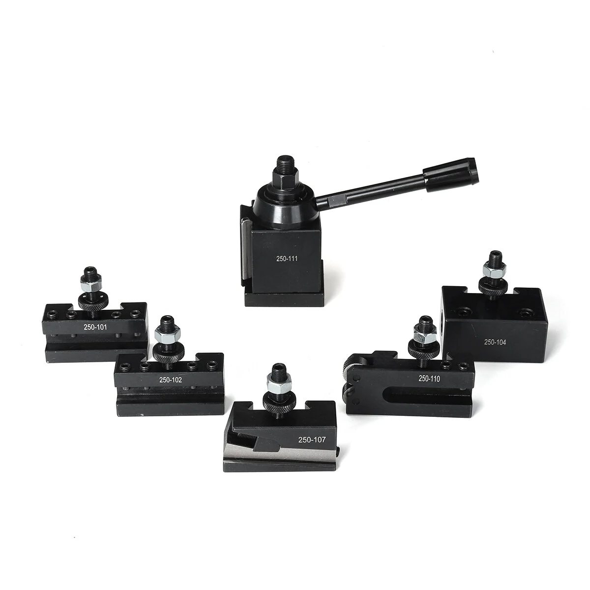 Description:Versatile Quick-Change Tool Post System: This quick-change tool post system is an essential accessory for standard lathes, made up of a robust tool post and various compatible tool holders. Designed to handle diverse machining tasks such as cylindrical facing, end facing, grooving, drilling, reaming, and boring, it offers unmatched versatility. The tool holders can be rapidly exchanged using the dovetail slot installation, enhancing productivity across multiple machining processes.High Precision and Exceptional Rigidity: The dovetail installation mechanism ensures precise positioning and outstanding rigidity during operations. It surpasses traditional square turrets by allowing quick tool mounting and removal outside the machine tool. The high precision and strong structural integrity contribute to achieving superior workmanship and efficient machining, making it an optimal replacement for square turrets.Wide Range of Tool Bit Compatibility: Equipped to hold a broad range of tool bit sizes, our tool holders are designed to meet various machining needs. Models such as 250-101 and 250-102 accommodate tool bit ranges of 3/16" to 1/2", while others like 250-110 offer extended clamping ranges. This makes the system adaptable to specific machining requirements, ensuring comprehensive coverage for different tasks.Rugged and Weight-Optimized Construction: Crafted to endure demanding use, the tool holders vary in size and weight to fit different operational needs. Whether