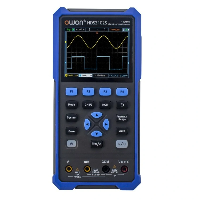 Nota: Se il computer non installa automaticamente il software con successo, installare il software manualmente seguendo il file PDF nel manuale.Manuale e software in ingleseCaratteristiche:● Oscilloscopio + multimetro + generatore di forme d'onda, multifunzione in uno● Visualizza LCD a colori ad alta risoluzione e alto contrasto da 3,5 pollici, adatto per l'uso all'aperto● Batteria al litio 18650, consumo energetico globale ≤ 3W, può funzionare continuamente per circa 6 oreInterfaccia USB Type-C, supporto di power bank, supporto di connessione software PC● Funzione di auto-calibrazione● Supporto SCPI, facilitare lo sviluppo secondarioSpecifiche:OscilloscopiModelloHDS2102 HDS2102S «Larghezza di banda» 100MHz100MHz Canali 2- Oscilloscopio CHOscilloscopio a 2 canali+1-Generatore CH Tasso di campionamento 500MSa/s Modellolo di acquisizione Normale, Rilevazione piccoLunghezza del record8KVisualizzaSchermo LCD da 3,5 polliciFrequenza di aggiornamento della forma d'onda10,000 wfrms/sAccoppiamento di ingresso DC, AC e Terra Impedenza di ingresso 1 MΩ+2%, in parallelo a 1 6pF+10pF Fattori di attenuazione della sonda 1X,10X,100X,1000X,10000XTensione di ingresso massima400V (CC+CA, PK PK, impedenza di ingresso 1MΩ)(attenuazione sonda 10:1)Limite di larghezza di banda (tipico) 20MHz Banda completaScala orizzontale 2ns/div - 1000s/div, passo 1-2-5 Sensibilità verticale 10 mV/div - 10 V/div Risoluzione verticale 8 bits Tipo di trigger Bordo Modalità trigger Auto, Normale, singolo Misurazio