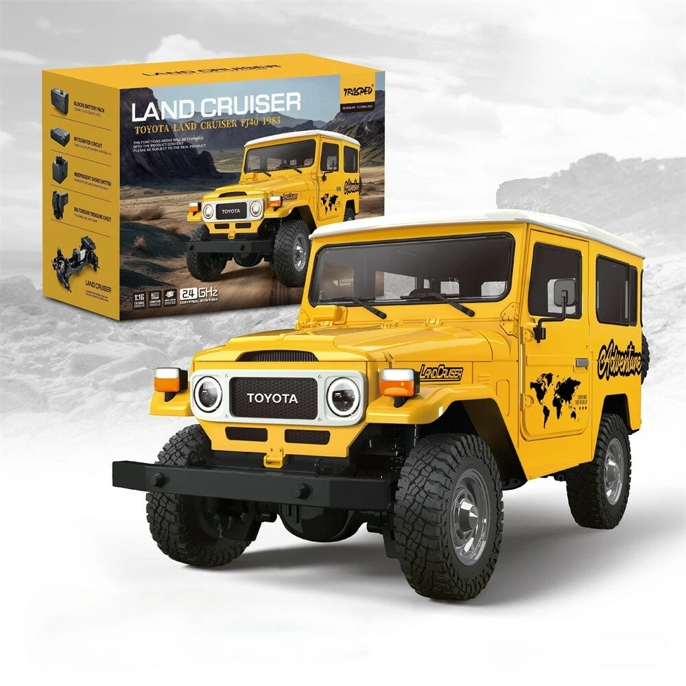Nota: L'aerosol per fumatori non è incluso, devi prepararlo da solo e solo la versione migliorata ha il suono e la funzione del fumo.Descrizione:Informazioni di baseMarca: HG TRASPEDN/ATOYOTA Land Cruiser FJ40 1983 ufficialmente autorizzatoScala: 1/16Colore: Verde e gialloVelocità massima: 3.1 km/hSistema di alimentazioneScheda di controllo due in unoMotore: motore spazzolato 050, 19500 giri, potente magneteServo: servo digitale di sterzo da 9gTrasmettitoreFrequenza: 2.4GCanale:4CHDistanza remota: ≤60mBatteria: 4X 1.5V AAA(non incluse)BatteriaBatteria per l'automobile: batteria al litio 7,4 V 500 mAh 3C / 600 mAh 5C (inclusa, standard è 500 mAh, aggiornata è 600 mAh)Tempo di ricarica della batteria: circa 4 ore Tempo di utilizzo della batteria: Circa 30 minuti AltroMateriale: Hardware, ABS e componenti elettroniciRapporto di riduzione:1:51Peso della macchina: Circa 580g/630g (standard/aggiornato)Peso della scatola: circa 1050 g / 1164 gDimensioneDimensionei dell'auto: 254,4*106,6*125,5mmPista anteriore posteriore: 140,6 mmPista Sinistra Destra: 89,6 mmDiametro pneumatico: 43.6 mmDimensionei scatola: 257*143*198 mmFunzione di base: controllo proporzionale completo in avanti, indietro, gira a sinistra / destra, quattro ruote motrici non hanno differenziale.La differenza tra la versione standard e la versione aggiornata:Versione standardCon batteria da 7.4v 500mah 3c, con luce frontale a LED,1. Con il motore 050, motore a spazzole (19000 giri/min, magnete potente)Servocomando di