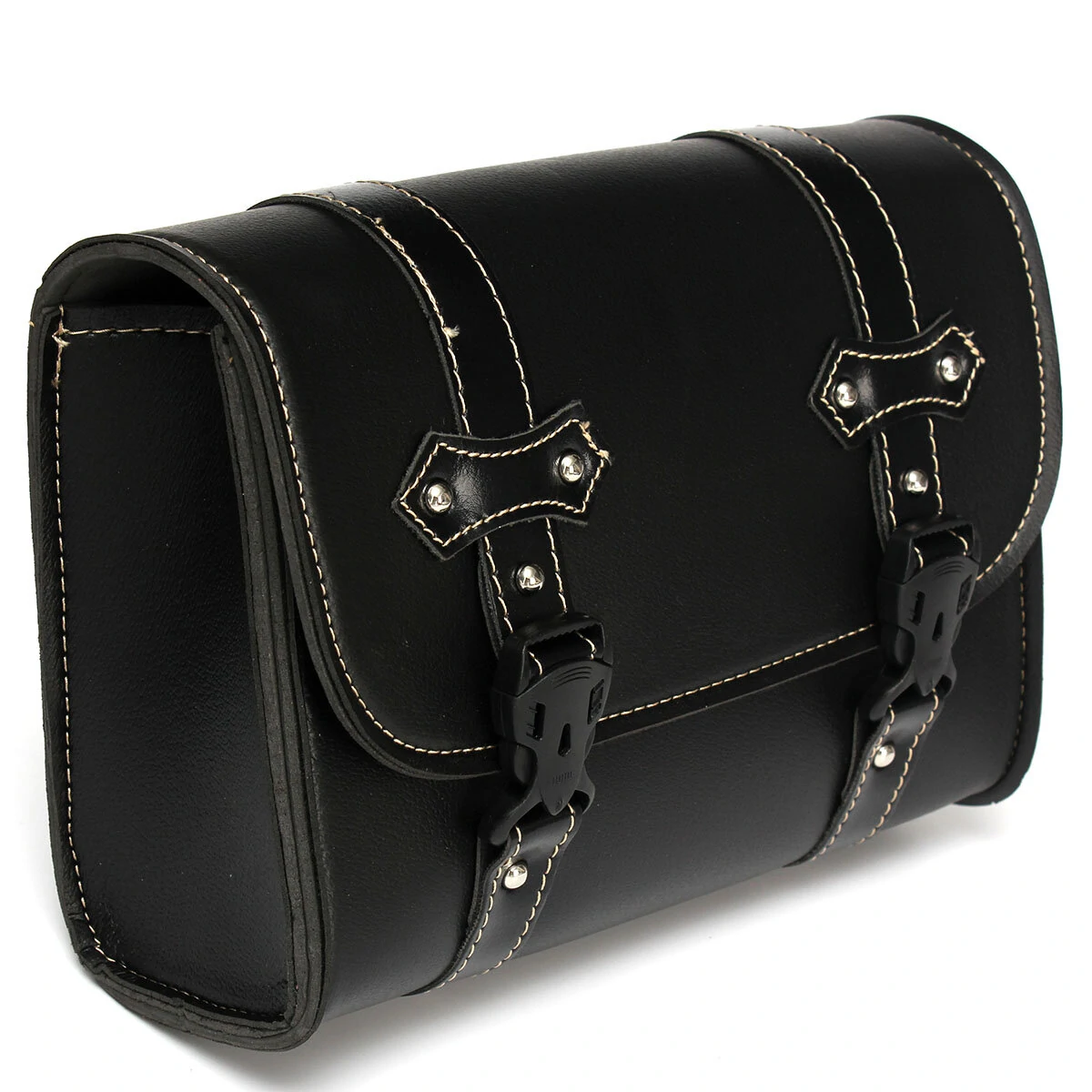 Descrizione:With two mounting straps.Borse a sella con borchie cromate.Realizzare un ampio e adeguato interno della stanza per tutti i tuoi utensili e altri elementi essenziali.Sono tutti resistenti alle intemperie e all'acqua o al calore e forniscono sicurezza ai bagagli morbidi dagli scarichi caldi o dalla pioggia.Facile da installare e utilizzare.Universal fitLa dimensione può essere inaccurata di 1-5 mm a causa della misura manuale Specificazione:Quantità: 1 pezzoMaterial: PU Leather,Plastic bucklesColore: NeroDimensioni: circa 27x10.5x20cm (LxPxA) (10.6″x4.1″x7.9″)Dimensioni interne: 25,5x9x16,5cm (LxPxA) (10″x3.5″x6.5″)Lunghezza cinturino: 28cmPosizionamento sul veicolo: lato sinistro, lato destroPacchetto incluso:1 X Motorcycle Leather Tool Bag