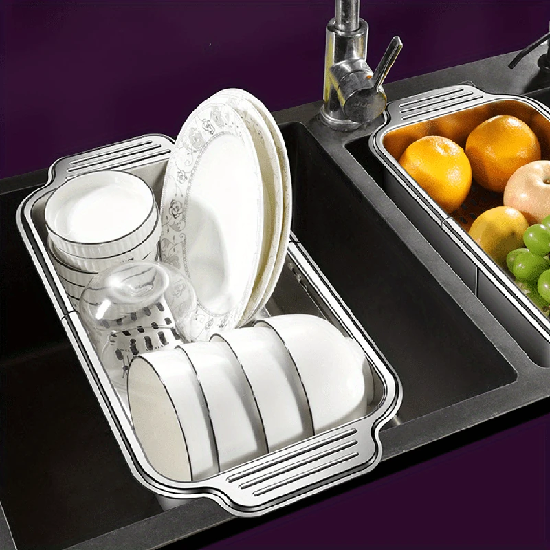 المواصفات:الاسم: رف تصريف المطبخ القابل للسحبالمادة: فولاذ مقاوم للصدأ عالي الجودةطول قابل للتعديل: 35 سم إلى 44.5 سمتصميم الفتحة: تصميم ذو مخرج مزدوج، ثقوب صرف سهلةالأبعاد: تقريبًا 34 سم عند الانكماش، 44 سم عند التمددالوزن: خفيف الوزن ولكنه متينالميزات:1. تصميم ذو غرض مزدوج:مزودة بفتحتين، تتيح هذه السلة المصنوعة من الفولاذ المقاوم للصدأ الغسيل والتجفيف المتزامن للفواكه والخضروات والأدوات، مما يضمن سير عمل فعال في المطبخ.2. وظائف قابلة للتوسع ومتعددة الاستخدامات:تضمن الطول القابل للتعديل من 35 سم إلى 44.5 سم التوافق مع الأحواض ذات الأحجام المتنوعة، مما يعزز القدرة على التكيف مع تصميمات المطابخ المتنوعة.3. نظام تصريف بدون جهد:تعزز الفتحات المثقوبة تصريف المياه بسرعة، مما يحافظ على المحتويات جافة وخالية من الرطوبة الزائدة دون إضاعة الوقت أو الجهد.4. استخدام متعدد الأغراض:مثالي لتنظيم الأطباق وتخزين مستلزمات المطبخ وشطف الفواكه والخضروات، مما يوفر مجموعة واسعة من الوظائف في تصميم مدمج واحد.5. مادة الفولاذ المقاوم للصدأ الممتازة:تم صنع السلة من الفولاذ المقاوم للصدأ المقاوم للصدأ، مما يوفر حلاً موثوقًا للمطبخ للاستخدام اليومي مع الحفاظ على مظهر مصقول.الحزمة تشمل:1 × رف تصريف المطبخ القابل للسحب