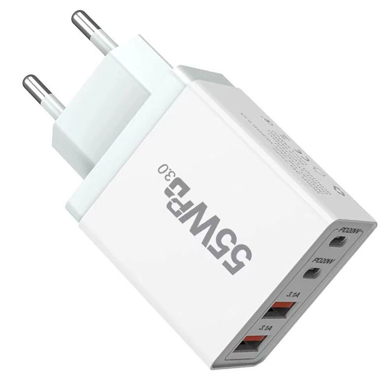 사양:색깔하얀색재료PC 화재 방지크기5.5*4.5*2.7cm인터페이스2USB-A+2USB-C입력DC100-240V~50/60Hz 0.8A출력C1: 5V/3A 9V/2.22A 12V/1.67AC2: 5V/3A 9V/2.22A 12V/1.67AUSB3: 5V/3.1A MaxUSB4: 최대 5V/3.1A프로토콜PD QC PPS유형유럽 플러그/미국 플러그력55W특징: 1. 컴팩트 디자인: 전원 어댑터는 5.5*4.5*2.7cm의 작은 크기로 휴대 가능하고 여행에 적합합니다.2. 다중 인터페이스: 2개의 USB-A 포트와 2개의 USB-C 포트를 통해 다양한 장치에 대해 다목적 충전 옵션을 제공합니다.3. 고속 충전: C1 및 C2 포트는 여러 전압 옵션을 지원하는 PD 고속 충전을 지원하여 호환되는 장치에 대한 효율적인 충전을 보장합니다.4. 범용 호환성: 전원 어댑터는 스마트폰,태블릿,노트북 등 다양한 장치와 호환됩니다.5. 안전하고 신뢰할 수 있음: PC 난연성 재료로 만들어져 과열, 과충전 및 단락으로부터 보호하며 장치의 안전을 보장합니다.패키지에 포함된 것:1x 충전기