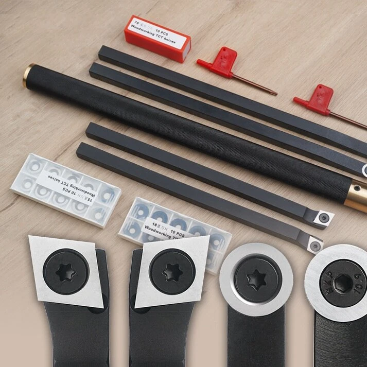 Spécifications:Nom du produit : Outil de tournage pour tour couteau jetableMatériau de la lame : Inserts en carbureType A:Couteau côté gauche :Taille de la barre d'outils : 12 x 12 x 250 mmSpécifications de la lame : lame en diamant de 75°, bord de contact de 19 mmVis : vis Torx intérieure M6Poids: 279gType B:Couteau du côté droit :Taille de la barre d'outils : 12 x 12 x 250 mmSpécifications de la lame : lame en diamant de 75°, bord de contact de 19 mmVis : vis Torx intérieure M6Poids: 279gType C:Couteau embryonnaire de 15 mm :Taille de la barre d'outils : 12 x 12 x 300 mmSpécification de la lame : lame ronde de 15 mmVis : vis Torx intérieure M6Poids: 320gType D:Couteau embryonnaire de 16 mm :Taille de la barre d'outils : 12 x 12 x 300 mmSpécification de la lame : lame ronde de 16 mmVis : Vis Torx M5Poids: 320g Fonctionnalités:Lames à haute dureté : Équipées d'inserts en carbure pour un meilleur rendement de coupe et une longévité dans les tâches de tournage du bois.Conception de précision : la lame de gauche et de droite est dotée d'une lame en diamant à 75° avec un bord de contact de 19 mm,offrant des coupes précises et propres.Options polyvalentes : Disponible en différentes configurations,y compris des lames d'embryon de 15 mm et 16 mm avec des lames rondes pour diverses applications de travail du bois.Construction robuste : Les barres d'outils sont en acier de haute qualité avec des dimensions constantes (12x12 mm),garantissant stabilité et fiabilité lors des opérations.