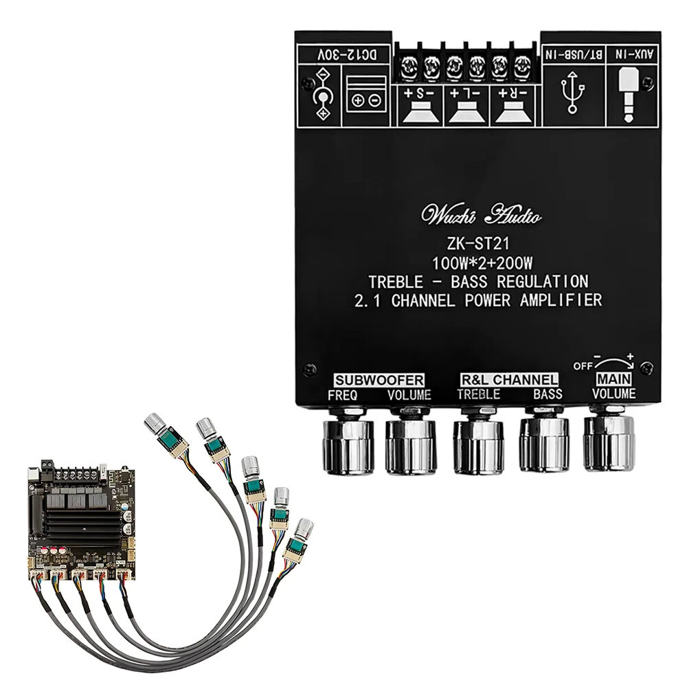 Özellikler:1. Yüksek güçlü dijital ses amplifikatörü özel endüktansı,yüksek akımı,düşük manyetik kayıpları,düşük ısı üretimi benimsemek,ses kalitesini artırmak için oksijensiz bakır tel kullanmak ve elektromanyetik parazitleri önlemek için manyetik shielding mekanizmasını kullanmak.2. İki TPA3221 çipi ile donatılmıştır,2.1 kanallı Bluetooth dijital amplifikatör 100W+100W+200W yüksek güç desteği sunar.3. Subwoofer genişletme pveyatu, 1602 ve 3002'nin montajını desteklemektedir.4. Mikrofon ön sahne panosunun yankı girişine veya çıkışına bağlanabilen birden fazla genişleme pveyatu, kullanımı kolay.5. Kveyauma mekanizması, giriş düşük voltaj, giriş ters bağlantı kveyauması, aşırı ısınma, aşırı akım ve kısa devre kveyauması ile donatılmıştır. Özellikler:Ürün adı: 2.1 kanal BT amplifikatör kartı 100W+100W+200WÜrün modeli: ZK-ST21Uyarlanmış güç kaynağı: Çalışma voltajı aralığı 12-30VDC'dir ve 24V-28V voltajına ve 10A veya daha fazla akıma sahip bir DC güç kaynağı kullanılması önerilir.Maksimum güç: sol veya sağ kanal—— 105W@30V,4 Ω; 55W@30V,8 Ω. Subwoofer—— 208W@30V 2 Ω; 105W@30V,4 Ω. Kısacası,voltaj arttıkça direnç azalır ve çıkış gücü artar.Uyarlanmış hoparlörler: sol ve sağ kanallar, 3-8 Ω ve 100W'a kadar hoparlörleri destekler; Subwoofer, 2-8 Ω ve 200W'a kadar hoparlörleri destekler.BT çipi: Jerry 5.1, iletim mesafesi 15 metreGiriş yöntemi: BT+AUX+USB sürücü+ses kartıKanal sayısı: 2.1, sol kanal + sağ kanal + subwooferGüç amplifikatörü çipi: İki TI veyaijinal TPA3221Kveyauma mek