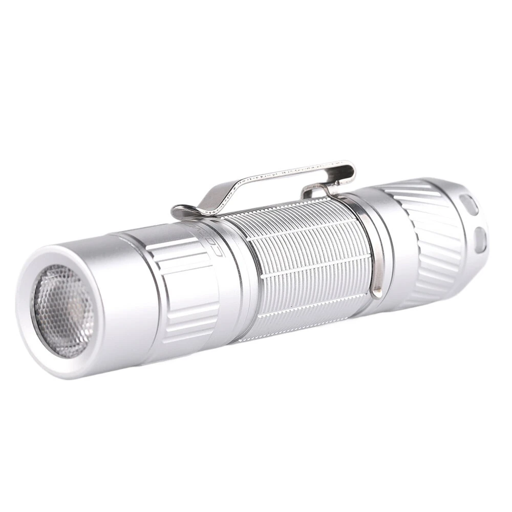 사양:브랜드컨보이모델T5LED519A R9080FLUX300-500lm모드12 그룹,최대 전류 출력 0.5A (AA 배터리)최대 전류 출력 1.5A (14500 리튬 배터리)모드 메모리네최대 효율75%(4모드)/90%(13그룹)배터리1 * AA / 14500 (포함되지 않음)조명 범위50미터 미만재료알루미늄 합금방수 등급IPX6스위치 타입뒤집은렌즈60도 TIR 렌즈크기21mm (지름), 87.8mm (길이)무게47g 패키지에 포함되어 있는 것: 1 x 컨보이T5 손전등 1 x Clip 1 x 래니어드