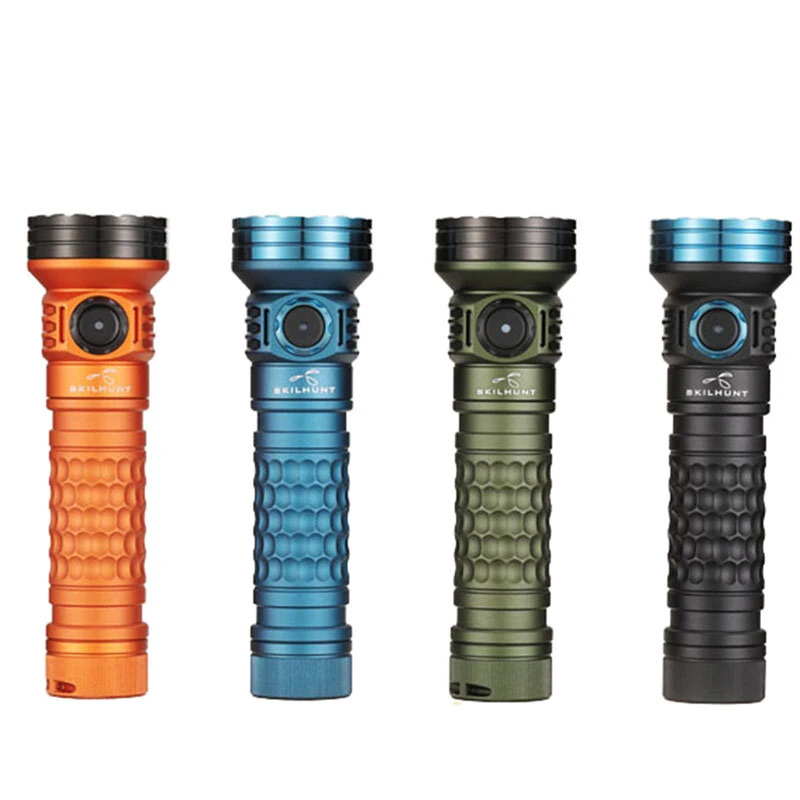 المواصفات:علامة تجاريةSKILHUNTالنموذجMiX-7 Gen 2 PlusLEDLED أبيض: 3 × XP-G4 5700K3 × نيشيا 519A عالية CRI R9080 5000Kأقصى إخراج2000 Lumensالوقت الأقصى للتشغيل600 Hoursالتيار الهادئ55 μAالحد الأقصى لمسافة الشعاعالضوء الأبيض: 182م (XP-G4 CW) / 115م (NVSW519AT)لون الضوء: 61م (R1) / 96م (G1) / 12م (B1)أقصى شدة شعاع الذروةضوء أبيض: 8300cd (XP-G4 أبيض بارد) / 3300cd (NVSW519AT)ضوء ملون950cd (R1) / 2300cd (G1) / 40cd (B1)مقاوم للماءIPX-8مقاوم للتأثير1 Meterبطارية1*18650النطاق المقيم2.7V ~ 4.2VالبعدL109.6mm / 4.31"، قطر الرأس 32.5mm / 1.28 الوزن68g / 2.40 oz (البطارية مستبعدة) الميزات:إضاءة متعددة الألوان متعددة الاستخدامات: تجمع بين 3 مصابيح LED بيضاء وفي برعم ، 1 مصباح أحمر ، و 1 مصباح أزرق و 1 مصباح أخضر و 1 مصباح UV365 ، وتوفر إضاءة متنوعة في تصميم صغير يمكن وضعه في الجيب.2.إخراج لومن عالية: يصل الضوء الأبيض إلى 2000 لومن مارٍ مما يضمن سطوعًا قويًا.3. شحن مغناطيسي مريح: يتميز بشحن مغناطيسي سهل الاستخدام لمزيد من الراحة.4. قابلية الحمل المصغرة: أبعاد مدمجة لسهولة الحمل والتعامل.5. واجهة سهلة الاستخدام: تحكم سهل للاستخدام السهل.6. إعدادات الذاكرة التلقائية: تحتفظ بآخر وضع تم استخدامه لتعزيز تجربة المستخدم.7. ميزة الذيل المغناطيسي: تسمح باستخدام اليدين الحرة والتثبيت في مختلف الحالات.تصنيف مقاوم للماء 8.IPX-8: مصمم لتحمل الظروف الرطبة لأداء موثوق به.9. مؤشر حالة البطارية: يُنبِّه المستخدمين على قدرة البطارية المتبقية.10. التحكم الذكي في درجة الحرارة: يضمن التشغيل الآمن والمستقر من خلال إدارة درجة الحرارة الذكية.11. بخصوص تطبيقات الألوان الفردية للضوء:أداة الضوء الأحمر: تحافظ على الر