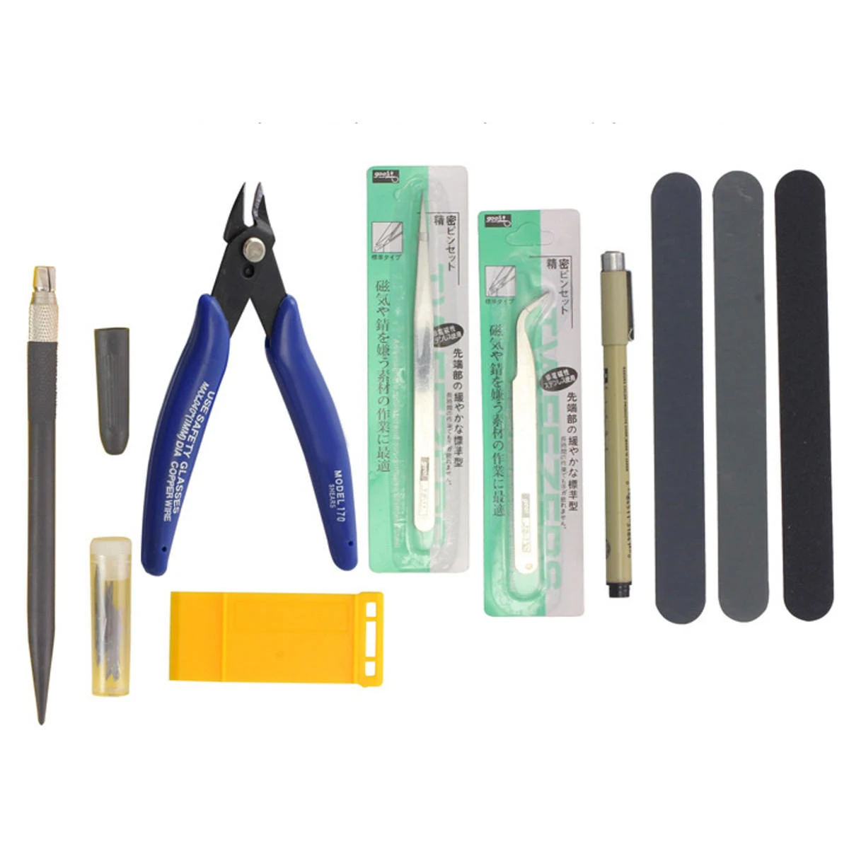 Funzionalità: Pinzette antistatiche, morsetto per piccoli pezzi, fissato, può essere utilizzato anche per tenere la pasta d'acqua, coprire la banda, ecc.- File lucidate, parti del modello lucidate, fornendo un effetto di superficie ruvida e fine su entrambi i lati.- Pinze modello, manico in plastica, resistente, adatto per piastre di plastica, per favore non utilizzare per cavi.- La parte della lastra tagliata per tagliare piccoli fili, schede circuito stampato, bordi di plastica.- Quando si usa il clipper per modelli, si consiglia di indossare occhiali protettivi per evitare schizzi di ferite da taglio.- Separatore di modelli, il modello stesso ha parti incollate che possono essere fissate alla superficie abrasiva della carta vetrata modello.Il set di strumenti base per modellisti è adatto sia per principianti che per modellisti esperti.- Poiché gli Strumenti di Base del Modellatore sono molto appuntiti, si prega di utilizzarli con cura e tenerli lontani dai bambini.Specificazione: Tipo: Strumenti di base per modellisti fai da teMateriale: Metallo, Plastica, Acciaio inossidabileQuantità: 7 pezzi/setPacchetto incluso: 1 x pinze taglienti laterali1 x Pinzette diritte1 x Pinzette curve1 x Penna da disegno1 x Separatore di parti1 x Penna da intaglio con 12 lame di ricambio3 x Lime doppie a doppia faccia lucidateFoto dettagliate: