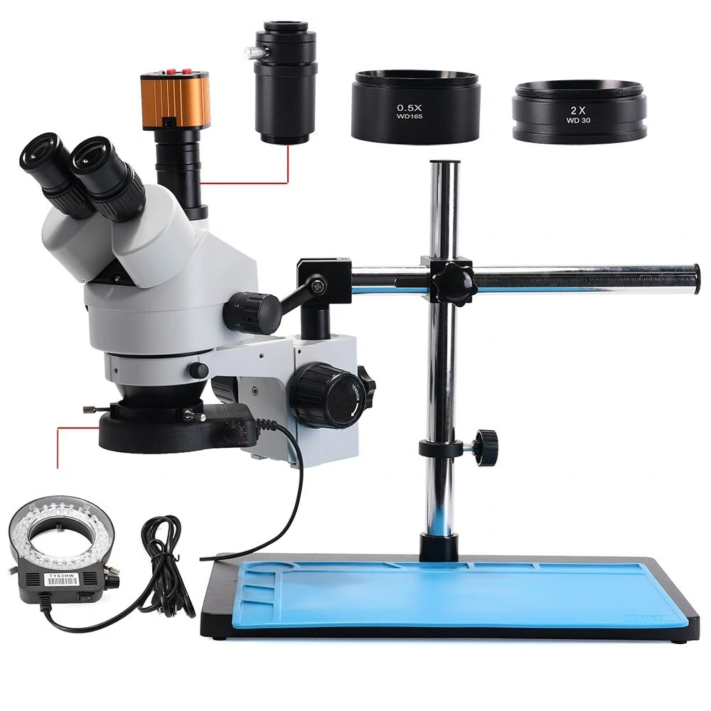 İngilizce kılavuzu indirmek için lütfen buraya tıklayın HY-5200 CameraÖzellikler:3,5 ~ 90X zoom büyütme gücü ile net keskin görüntülerSüper geniş alan yüksek göz noktası optikgeniş görüş alanı 4" (100mm) çalışma mesafesiSağlam tüm metal direk ayakDimerli güçlü 56 LED halka ışığıBu stereo mikroskop, süper geniş alan optiği ve serin ışıklandırma sistemi ile 7X-45X büyütme gücü sunan 56-LED halka ışığına sahiptir. Endüstriyel muayene ve/veya biyolojik laboratuvar uygulamaları için ideal bir araçtır. Bu mikroskop, mücevher bilimcileri, üretim mühendisleri, diş laboratuvar teknisyenleri ve elektronik ve yarı iletken endüstrilerinde çalışan herkes için mükemmeldir. Parlaklık ayarlanabilir 56 LED halka ışığına sahip mükemmel bir stereo muayene mikroskobu3,5x-90x süper geniş zoom büyütme gücüParlak serin ışık 56-LED aydınlatma sistemiYüksek çözünürlük, harika düzleme ve kontrast ile keskin ve net görüntüler sunar45 derece eğimli, 360 derece dönebilen göz tüplerine sahip ikiz mercekli başlıkGeniş bir görüş alanına sahip keskin stereo dik görüntülerKristal berraklığında orijinal gerçek renk mikroskop görüntüleriAyarlanabilir diyoptriye sahip çift göz tüpleriGeniş çalışma mesafesiSağlam tam metal masa üstü standıDoğru hizalama, daha uzun görüntüleme süreleri için göz yorgunluğunu azaltırTam optik cam elemanlarıHassas zemin cam lenslerTam metal krom kaplamalı mekanik bileşenlerAyarlanabilir gözbebekleri arası mesafeKauçuk göz koruyucuları dahil Özellikler: Baş: 360 derece dönebilen 45 de