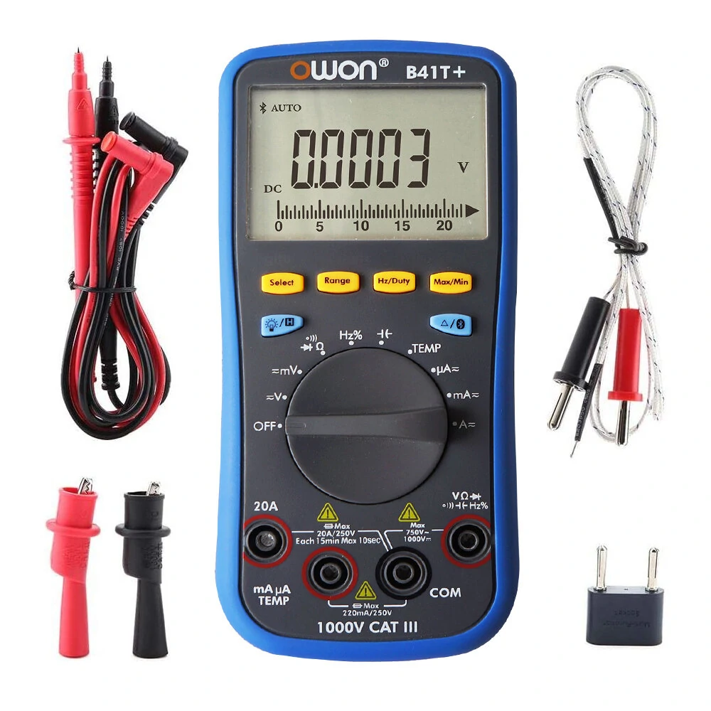 Özellikler:+ 3'te 1 olarak işlev gören: veri kaydedici + multimetre + sıcaklık ölçer+ mobil uygulama aracılığıyla desteklenen çoklu bağlantı (birden fazla cihaz)+ özel grafik modu aracılığıyla erişilebilen değişim trend analizi+ ses uyarısı desteklenmektedir, bu da ölçüm güvenliğini sağlar+ akıllı sesli okunabilir erişilebilir4 (1/2) haneli karşılıklarıAkıllı güç kapama seçeneği pil ömrünü uzatırBluetooth 4.0 sürümü - Android 4.3 olan mobil cihazları desteklerveya daha yüksek / iOS 7.0 veya daha yüksek işletim sistemi ve ble 4.0 modüle sahip+ Çevrimdışı kayıt işlevi (sadece “+” modelinde)Gerçek RMS değeri kullanılabilirÖzellikler:Otomatik ölçeklendirme:Maks / Min Değer:√Çevrimdışı Kaydetme Fonksiyonu: B41T+Bluetooth Modülü:√Kayıt Süresi: 168 saat (7 gün)Kayıt Uzunluğu: 10.000 noktaTrue RMS:√LCD Arka Aydınlatma:√Diyot Testi: √Simüle Edilmiş Grafik:√Audion Testi:√Veri Tutma:√Giriş Koruması:√Oto Testi:√Düşük pil göstergesi:√Giriş Empedansı: 10MΩAçık-kapalı Uyarısı: LCDİlgili Ölçüm:√Boyut: 69mm x 52mmPil: 3V (1,5V x 2) AA (dahil değil)Boyut (GxYxD: 85mm x 185mm x 30mm)Cihaz Ağırlığı: 0,32 kgPaket içeriği:1 x B41T+ Dijital Multimetre1 x Sonda1 x K Tipi Termokupl1 x Timsah klipsi1 x Çok fonksiyonlu test soketi1 x İngilizce Kılavuz 1 x Yumuşak kılıfDetay Resimleri: