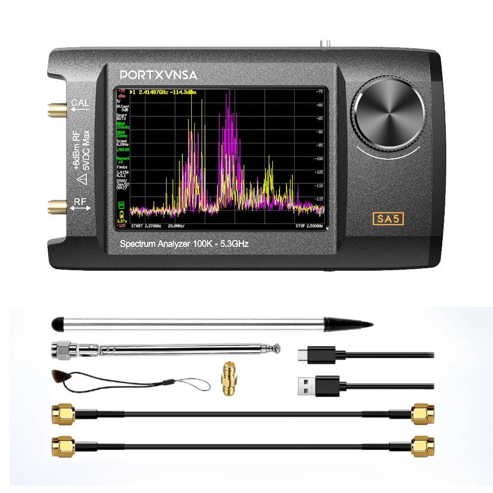 >>>MANUEL: Cliquez ici pour ouvrirCaractéristiques du produit SA5 :Taille de l'écran : 4 pouces IPS LCD,avec un grand bouton pour une utilisation facile. Analyseur de spectre : Mode normal : 0,1-800 MHz,mode ultra : fournit un étalonnage de niveau jusqu'à 5,3 GHz et peut observer des signaux jusqu'à 12 GHz. Générateur de signaux : Sorties d'ondes sinusoïdales entre 0,1-800 MHz,ondes carrées jusqu'à 4,4 GHz,ou signaux de test RF jusqu'à 5,3 GHz lorsqu'il n'est pas utilisé comme analyseur de spectre. Filtres passe-bande à résolution commutable : de 200 Hz à 850 kHz. LNA optionnel : Amplificateur faible bruit (LNA) intégré de 20 dB. Affichage du spectre : Affiche jusqu'à 450 points,affiche quatre traces configurées indépendamment. Stockage : Emplacement pour carte MicroSD pour stocker les mesures,paramètres et captures d'écran (carte SD non incluse).Atténuateur d'entrée : Atténuateur à étapes réglable de 0 dB à 31 dB (non utilisable avec LNA). Calibration : Comprend un générateur de signal de calibration intégré pour auto-test et calibration d'entrée. Connectivité PC : Se connecte via USB pour fonctionner comme un analyseur de spectre contrôlé par PC ou un générateur de signaux. Batterie : Batterie rechargeable de 5000mA fournissant au moins 10 heures d'utilisation portable. Niveau d'entrée maximal : +10dBm. Assurez-vous de ne pas dépasser cela pour éviter tout dommage.Spécifications:SpécificationDétailsPlage de fréquence d'entréede 100 kHz à 800 MHz en mode normal ; jusqu'à 6 G