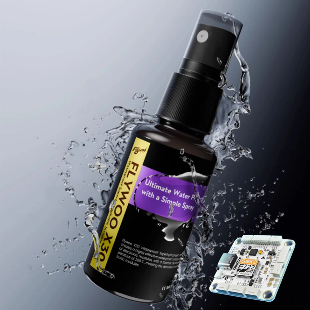 Açıklama:- Flywoo X30 Su Geçirmez Süperhidrofobik Görünmez Sprey, elektronik modüller için etkili bir su geçirmez kaplama oluşturur ve neredeyse tüm ihtiyaçlarınızı karşılar. En kolay şekilde dronlar için günlük su geçirmezlik sağlamak üzere konumlandırılmıştır.- Süperhidrofobik malzemeler,su geçirmeme özelliği için elektronik ürünlerde kullanılan ideal malzemelerdir. Süperhidrofobik malzeme,lotus yaprağının yüzeyine benzer. Benzersiz suya veya su buharına karşı uzak durma yeteneği sebebiyle,süperhidrofobik malzemeler su,nem,tuz spreyi,küf,toz,korozyon,kısa devre vb. gibi şeylerin önlenmesine yönelik doğal işlevlere sahiptir.Sadece basit bir sprey uygulamasıyla, 2-3 dakika içinde yüksek etkili su geçirmez bir kaplama oluşur, elektronik ürünleriniz su sıçramalarına dayanarak, hatta yağmurlu günlerde bile kullanılabilir hale gelir. Kullanma Talimatları:Temizleme: Kaplama işlemine başlamadan önce, alt tabaka yüzeyindeki tozu ve yağ lekelerini iyice temizlediğinizden emin olun.2. Bakım veya tekrar kaplama: Bu ürünün mükemmel bir tekrar kaplama performansı vardır. Tekrar kaplama yapılması gerekiyorsa, yüzeyi temizleyin ve doğrudan ilgili konuma yeniden uygulayın.(Not:1- Bir sonrakini uygulamadan önce her katın kurumasına izin verin.En iyi su geçirmez etkiyi elde etmek için, 2-3 kez tekrarlayarak püskürtmek önerilir.3- Kullanmadan önce, sıvının düzenli olmasını sağlamak için sallayın4-Püskürtme sonrası,yüzey kuruma süresi yaklaşık 2 ila 3 dakikadır. Yüzey,kuruduktan sonra günlük ku