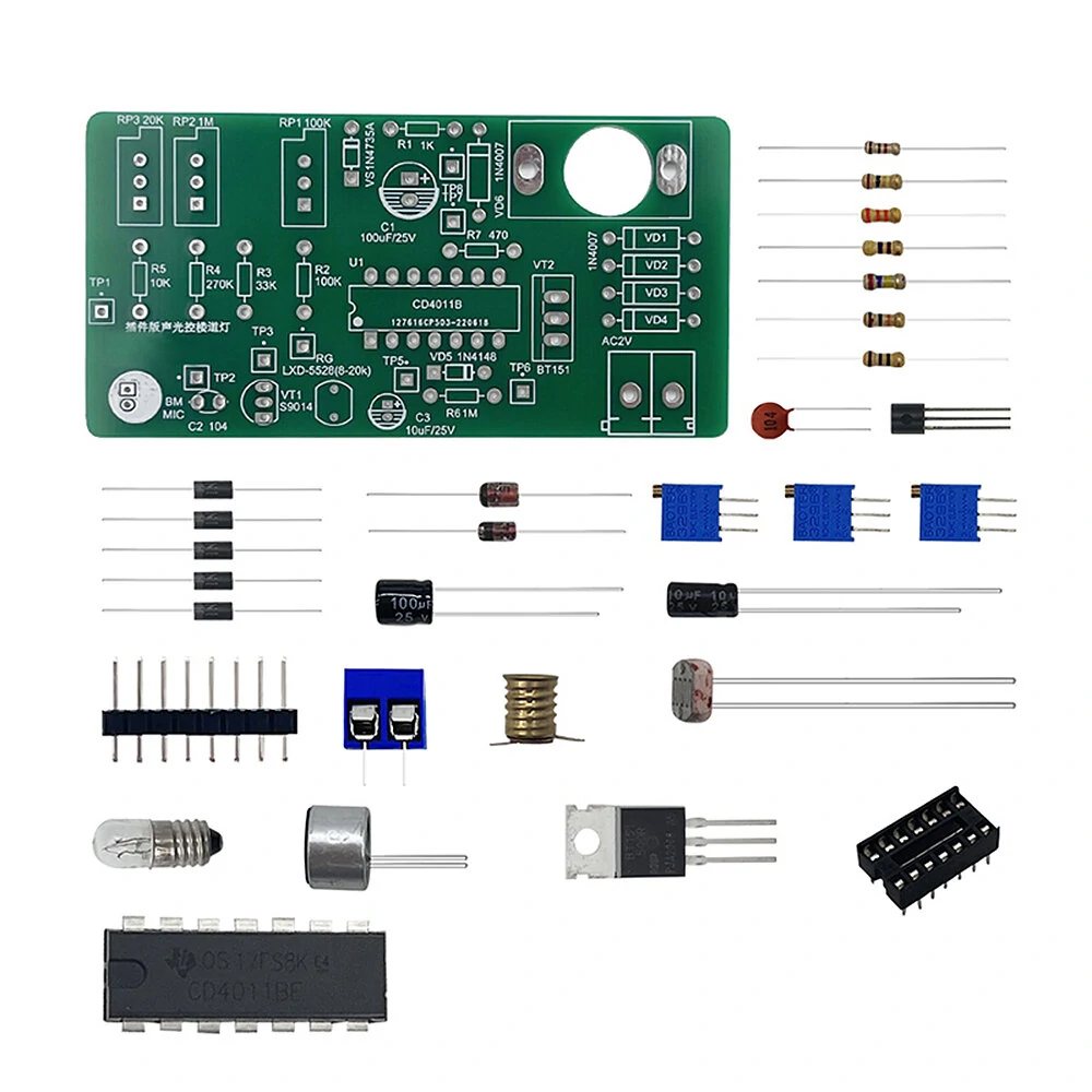 Açıklama:Bu görev, ses ve ışık kontrol binası lamba devresinin kurulumudur. Ses ve ışık kontrol koridor ışık devresi, kontrol kaynağı olarak ses dalgalarını kullanan yeni bir akıllı anahtar türüdür. Işıkları manuel açmakla uğraşmayı önler ve aynı zamanda otomatik gecikmeli sönme fonksiyonuna sahiptir, bu da daha enerji tasarruflu bir seçenektir. Ve mekanik elektrik çarpması, kıvılcım olmadan uzun ömürlüdür ve çeşitli bina merdivenlerinde, tuvaletlerde ve diğer umumi yerlerde yaygın olarak kullanılmaktadır.Özellikler:Ürün Adı: Ses ve Işık Kontrolü Koridor IşığıÜrün boyutu: 7,5 CM*3,7CMDevre kartı malzemesi: levha kalınlığı 1.6MMFR-4 levhaGüç kaynağı gerilimi: çift 12V transformatörPaket içeriği:1×Koridor Işık Devre Elektronik Montaj Kiti