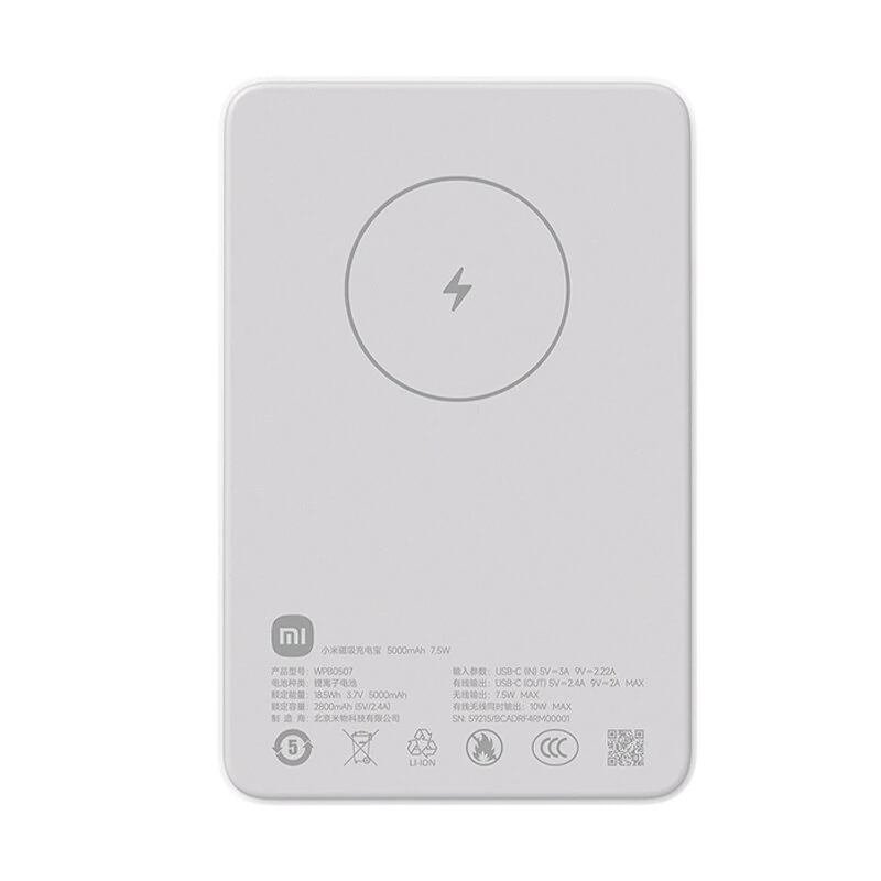 사양:브랜드샤오미모델WPB0507색깔하얀색배터리 종류리튬이온 배터리용량5000mAh등급별 용량2800mAh입력USB-C: 5V/3A, 9V/2.22A출력USB-C: 5V/2.4A,9V/2A 최대무선 출력: 최대 7.5WUSB-C + 무선 출력: 최대 10W크기103.7*68.3*12mm력7.5W특징: 1. 대용량: 샤오미 WPB0507 보조배터리는 5000mAh 용량의 리튬 이온 배터리를 특징으로 하여 귀하의 장치에 충분한 전력을 제공합니다.2. 빠른 충전: 이 보조 배터리는 USB-C 입력 및 출력을 지원하여 귀하의 장치를 빠르게 충전할 수 있습니다. 또한 7.5W까지의 무선 충전과 최대 10W의 USB-C+무선 출력을 지원합니다.3. 컴팩트한 디자인: 103.7*68.3*12mm의 크기로 이 파워 뱅크는 콤팩트하고 휴대가 간편하여 이동 중 충전하는 데 이상적입니다.4. 높은 호환성: 이 파워 뱅크는 스마트폰, 태블릿, 무선 이어폰 등 다양한 장치를 충전할 수 있습니다.5. 신뢰할 수 있는 품질: 전자 산업에서 잘 알려진 브랜드인 샤오미에서 제작한 이 보조 배터리는 뛰어난 품질과 내구성을 제공합니다.패키지에 포함된 것:1개 샤오미 WPB0507 파워뱅크1x USB-C 충전 케이블1x 설명서