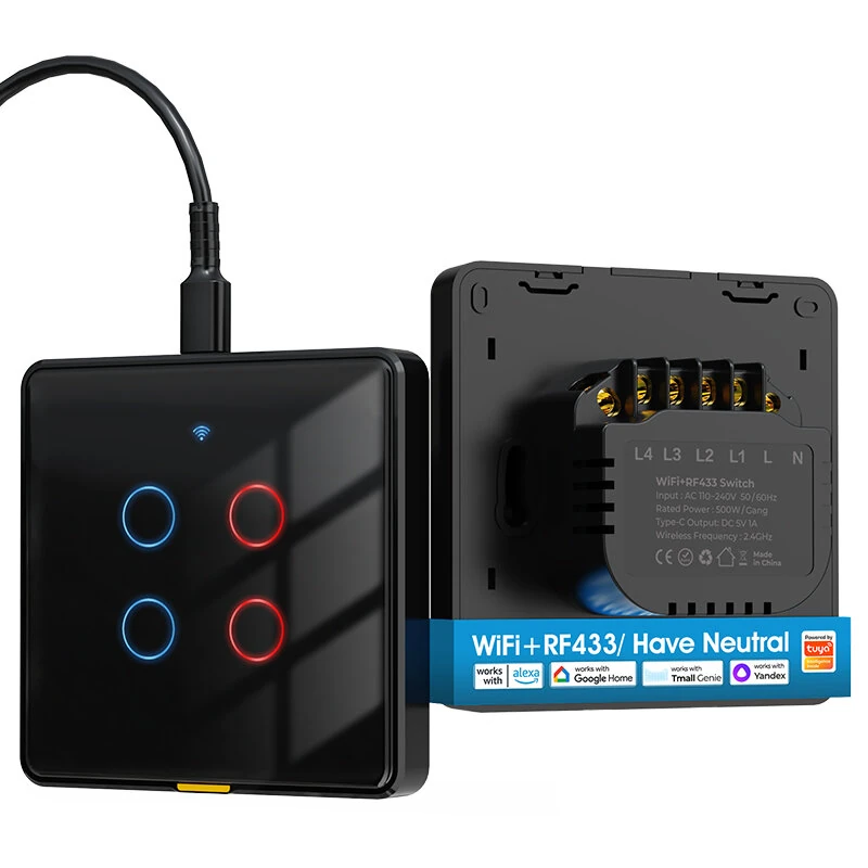 Özellikler:Malzeme: V0 Alev Geçirmez PC+ABSGerilim: AC 110~240V 50/60HzType-C Çıkışı: 5V1AGüç: Gang başına 500WÇalışma Sıcaklığı: 0°C~40°CKablosuz Frekans: 2.4GHzRF Çalışma Frekansı: 433.92MHzRF Kodlama Çipi: EV1527RF Modülasyon Metodu: ASKBoyutlar: 8.6 x 8.6 x 3.86 cmÖzellikler:1. 2.5D Kavisli Temperli Cam Panel:Herhangi bir ev dekoruna uyacak zarif kıvrımlar ve klasik renklere sahip tasarlandı.Sadece siyah versiyon için yanlarda şık bir boya finisajına sahip 2.5D eğilmiş temperli camdan yapılmıştır.Dokusu pürüzsüz ve temizlenmesi basit, nemli koşullarda çalışmak için nem dayanıklılığı ile.2. Ses ve Akıllı Telefon Uygulama Kontrolü:Akıllı bir geçit aracılığıyla Alexa,Google Assistant,Yandex ve Tmall Genie gibi akıllı asistanlarla uyumlu.Akıllı ev yolculuğunuza başlamak için akıllı telefonunuzdaki Tuya uygulamasıyla kolay yapılandırma.3. RF433 Uzaktan Kumanda:Uzaktan kumanda RF433'ü destekler (uzaktan kumanda dahil değildir) ve 100 metreye kadar açık bir alanda çalışır.Kullanıcı tercihlerine göre birden fazla kontrol seçeneği sunar.4. Zamanlama Fonksiyonu:Planlı, geri sayım, döngü, rastgele ve aralıklı gibi zamanlayıcıların ayarlanmasını sağlar.Gereksiz cihaz çalışmasını uzun süreler boyunca önleyerek etkili enerji kullanımını artırır.5. Çoklu Kontrol Derneği:Bir tıklama ile birden fazla akıllı anahtarı açıp kapatma kontrolünü sağlar.Evden çıkarken tüm cihazların kapalı olduğundan emin olarak enerji tasarrufu sağlamak için faydalı,pratik ve verimli bir yönetim sistemi sunmakt