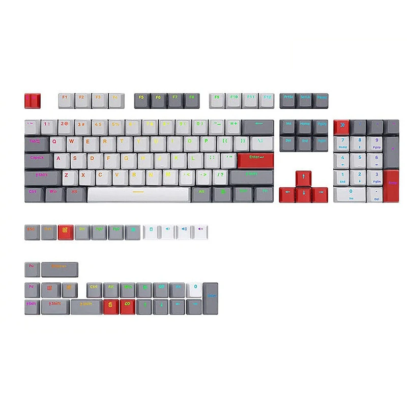 SKYLOONG رابط السلسلة:https://www.banggood.com/marketing-SKYLOONG-Mechanical-Keyboard-and-Keycaps-New-Release/tid-61063.html?utmid=23589المواصفات:علامة تجاريةSKYLOONGلونرمادي فاتح وأبيض وأحمرمادةPBTالملف الشخصيالملف التعريفي للمُصنِّع الأصليعدد المفاتيح137 Keysعلم الإرتجاءالدعمشخصية شفافةنعمتخطيط قابل للتطبيقمناسبة للوحات المفاتيح الميكانيكيةالميزات: علامة تجارية عالية الملف الشخصي: مصنوعة من العلامة التجارية الموثوقة SKYLOONG المعروفة بجودتها ومنتجاتها الموثوقة.2. مادة ممتازة: مصنوعة من مادة PBT المعروفة بمتانتها وقوتها ومرونتها ضد الحرارة، مما يضمن المتانة طويلة الأمد.3. تصميم مريح: يأتي مع دعم مريح للكتابة وجلسات الألعاب ويقلل من التعب أثناء الاستخدام المطول. 4. نفاذية الضوء: الحروف على الأزرار شفافة، وبالتالي يمكن رؤية وقراءة تسميات الأزرار بسهولة في بيئة مظلمة أو معتمة.5. التوافق: هذه المفاتيح مناسبة لوحات المفاتيح الميكانيكية التي توفر مرونة وتنوعاً للمستخدمين، مما يجعلها خيارًا مناسبًا لموديلات لوحات المفاتيح المختلفة.الحزمة تشمل:1x SKYLOONG 137 مفتاح مجموعة أغطية مفاتيح PBT