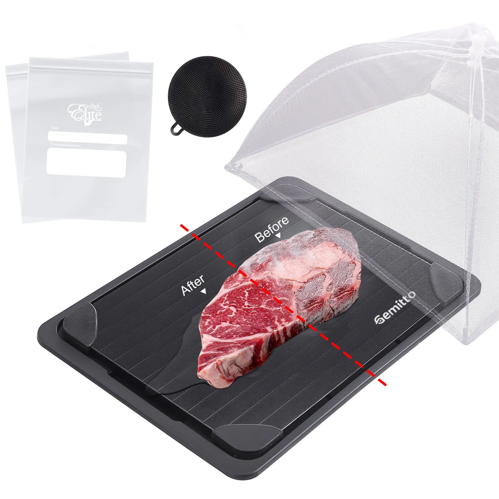 Descrizione:Vassoio scongelante: un modo più veloce e sicuro per scongelare carne o alimenti congelati- Non vengono utilizzate assolutamente sostanze chimiche o elettricità.- A differenza dei forni a microonde che cuociono parzialmente il cibo durante il processo di scongelamento, il Powerocean Tray scongela la carne in modo sicuro e veloce. - Il vassoio scongelante magico rimane fresco al tatto durante tutto il suo utilizzo, non è necessario preriscaldarlo o usare acqua calda.Basta posizionare il cibo congelato sul vassoio e si scongelerà fino a più velocemente che a temperatura ambiente. Specifiche:Materiale AlluminioColore NeroDimensione del tappetino29.3cm x 20.8cmDimensione del vassoio33.5 x 23.3 x 3cmIl pacchetto include:1 x Vassoio Sbrinatore Veloce