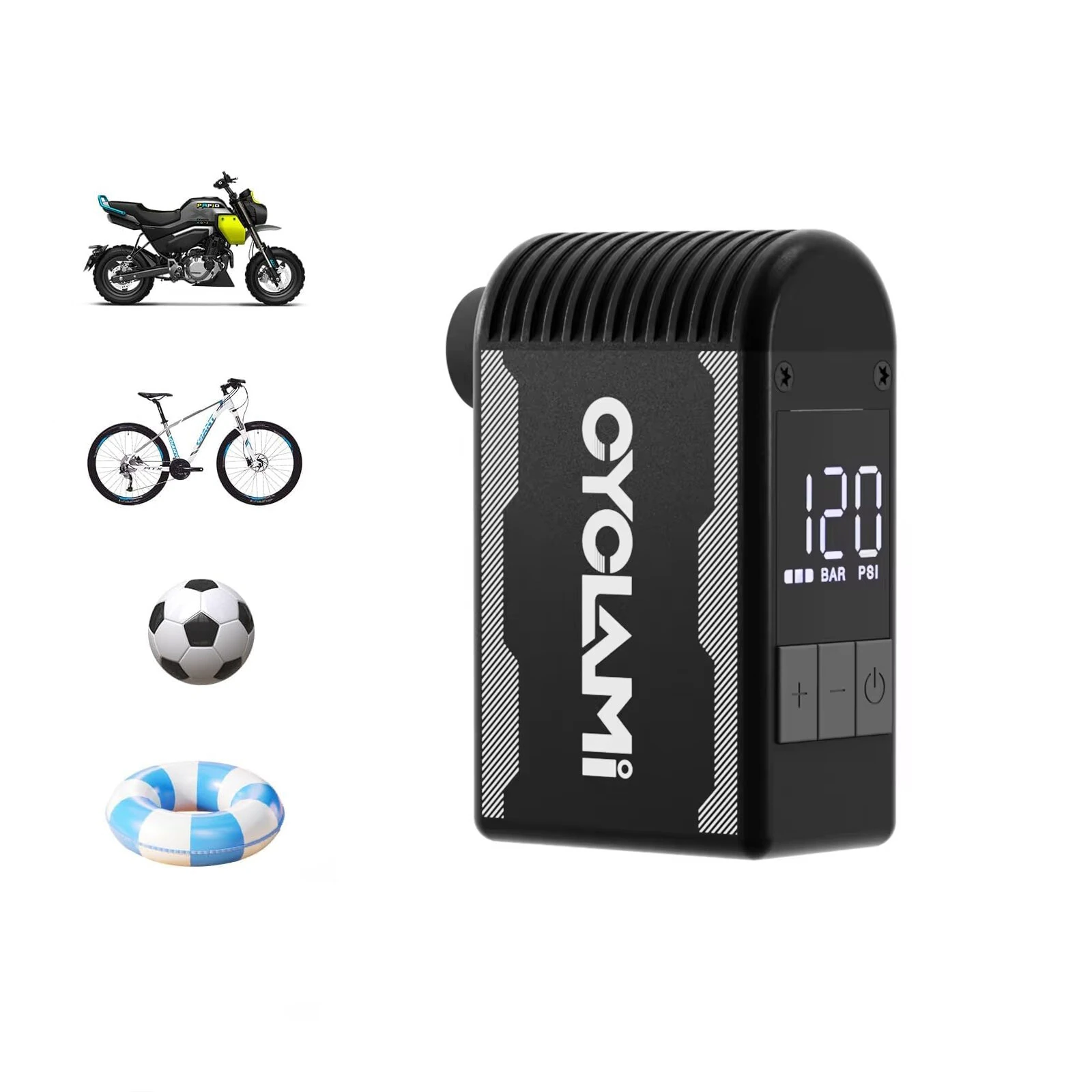 Specifications BrandCYCLAMIModelA2S MiniPressure120PSIBattery2 500mAhCharge time45minCharge portType CNet weightAbout 136gSize736 45 28 6mm Features 1 Portable and Lightweight Easily carry it with you during your cycling trips 2 High Pressure Quickly inflate your bike tires or basketballs with ease 3 Automatic Inflation Saves you time and effort by automatically stopping when the desired pressure is reached 4 Versatile Suitable for both cycling and basketball inflation needs 5 Easy to Use Simply attach the pump to the tire or ball set the desired pressure and press start Package includes 1 x Electric Inflator Pump1 x Charging Cable
