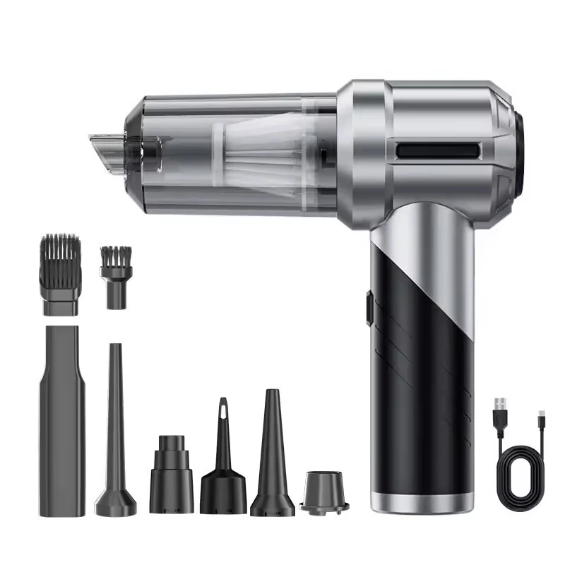 Especificações:Marca: suituNome: AspiradorDimensões: 19.5 x 6.8 x 19.5 cmMaterial externo: plástico ABSCor: PretoCapacidade de poeira: 0,15 LMétodo de carregamento: USB padrão, cabo Type-C (0,8 m de comprimento), 5V 1,5ABateria: 18650*3 2000mAh bateria de Li-ion, 11.1VPotência nominal: 100WPressão de sucção: Alta: 15 kPa, Média: 12 kPa, Baixa: 6 kPaFluxo de ar: 680 L/min (máx)Tempo de carregamento: Aprox. 4-5 horasTempo de trabalho contínuo: Baixo: 30 min,Médio: 18 min,Alto: 12 minDimensões da instalação de vácuo: 680 L/min de ventilação de sucçãoNível de som: ≤ 70 dBTemperatura do ambiente operacional: -20°C a +50°CTemperatura de armazenamento: -20°C a +50°CPeso Líquido: 0.395 kgPeso Bruto: 0.485 kgRecursos:- Poderosas capacidades de sucção e sopro:Equipado com um motor de alto desempenho, o aspirador oferece até 15 KPa de potência de sucção, lidando eficazmente com poeira, detritos e até partículas maiores. Além disso, ele pode transitar suavemente da sucção para o sopro, tornando-se uma ferramenta versátil para várias tarefas de limpeza e inflagem.- Acessórios multifuncionais para diversas aplicações:O aspirador vem com uma série de bicos especializados, incluindo escovas e acessórios planos, para alcançar cantos apertados do seu carro e casa. Também inclui vários bicos de sopro, adequados para inflar itens como anéis de natação, balões ou até mesmo limpar eletrônicos.- Design compacto e portátil:Projetado com a portabilidade em mente,a construção leve e compacta do aspira