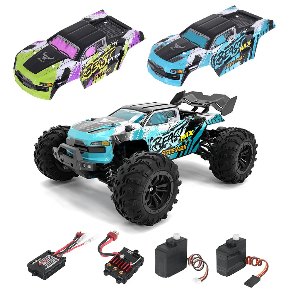 Description:Informations de baseMarque: ZLLNuméro d'article: SG216MAX / SG216PROÉchelle: 1/16Couleur: Noir/bleu-blancVitesse maximale: 40 km/h (version brossée); 70 km/h (version sans balais)Système d'alimentationLa version avec ou sans balais est facultative, choisie par vous-mêmeESC brossé de 30A / 35A ESC sans balaisMoteur: moteur balayé RC390 / moteur sans balais 2440 4500kvServo: 5 fils 17g servo / 3 fils 17g servoÉmetteurFréquence: 2.4GChaîne:4CHDistance à distance: ≥100m/150mBatterie requise : 3X pile AA 1,5V (non incluse)BatterieBatterie pour la voiture : batterie Li-ion 7,4 V 1300/1500 mAh 10C/15C (incluse, version brossée/sans balais)Temps de charge de la batterie: environ 3-3,5 heuresDurée de lecture de la batterie : environ 30-40 minutesAutreMatériau: PA + métal + pièces électroniquesPoids de la voiture: environ 860/890 gTélécommande Poids: Environ 170 gPoids de la batterie de voiture: 180 g/200 gPoids de la boîte: Environ 1670/1710gDimensionTaille de la voiture : 34*16.8*10.7cmEmpattement : 18,5 cmDiamètre du pneu : 8,5 cmLargeur de voie: 18,8 cmTaille de la télécommande : 13*7.5*21 cmTaille de la boîte: 36*14,4*25cm Caractéristiques de la version sans balais:1. Adoptez la conception de la structure de simulation, avec la sensation de contrôle des voitures réelles, réalisez une transmission variable à l'échelle complète, une conduite à grande vitesse, une accélération, une décélération, un freinage, une marche arrière, un virage à gauche, un virage à droite;Lieux
