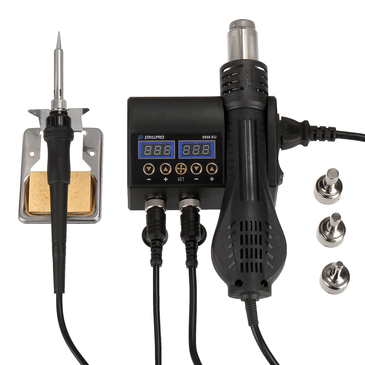 난방 요소를 얻으려면 여기를 클릭하세요납땜 철팁>>>청소 공설명:핫 에어 히터 및 용접 아이언 2in1 리워크 솔더링 스테이션입니다.정밀 온도를 표시하는 듀얼 LCD 디지털 디스플레이.매우 낮은 노이즈와 공간 절약형 디자인입니다.지능형 자동 확인 기능은 안전한 작동을 보장하며 개인 및 전문적인 사용에 적합합니다.열기 히터의 수명을 효과적으로 연장하고 뜨거운 공기 히터를 보호하기 위한 자동 냉각 기능입니다.사양:핫 에어 히터작동 전압: AC220-240V 또는 AC100-130V주파수: 50Hz/60Hz출력 파워: 750W온도 범위: 100°C~480°C온도 안정성: ±2℃공기 유량: 150L/min (최대)납땜기작동 전압: AC220-240V 또는 AC100-130V출력: 80W주파수: 50Hz/60Hz온도 범위: 180°C-500°C온도 안정성: ±1°C납땜기 : ESD 디자인히터 재료: 세라믹사용 방법:1. 솔더링할 전자 부품을 청소하십시오.2. 다리미가 온도에 도달하면 (너무 높지 않고 300-400℃를 추천합니다).3. 산화를 방지하기 위해 가열된 납땜팁에 약간의 납을 바르고 납땜팁의 표면에 납을 고르게 펼치도록 납땜팁을 문지르십시오.4. 납땜을 시작하세요포함된 패키지:1 x 750W 납땜기 도구 세트자세한 사진:
