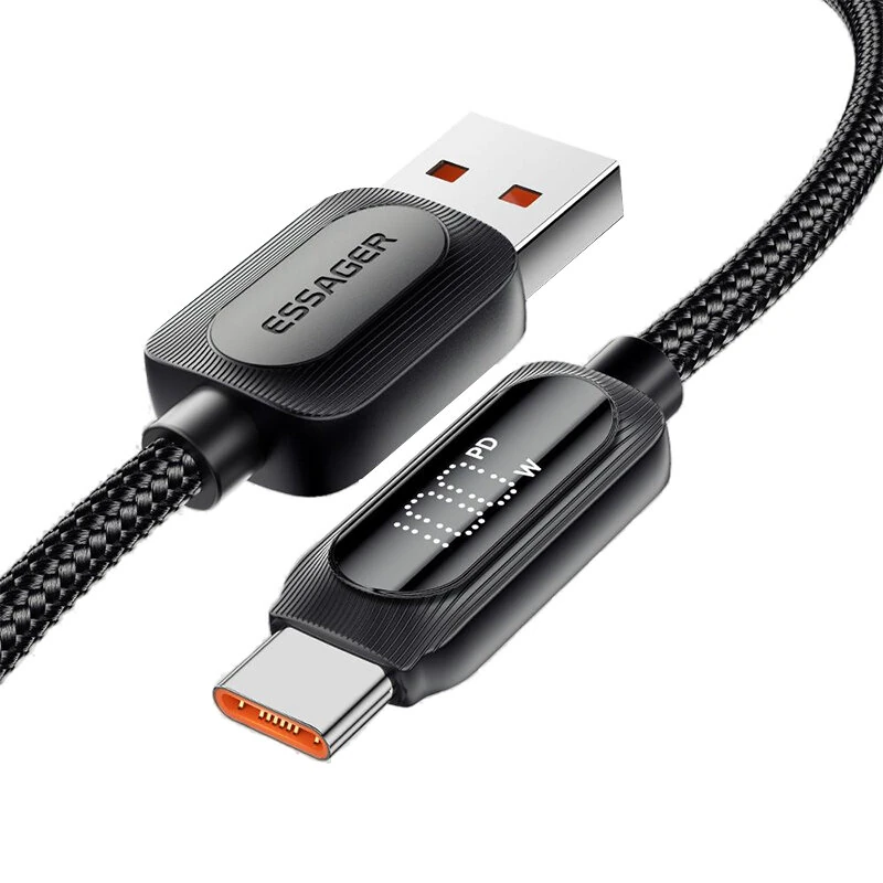 Specifications BrandESSAGERModelES X57MaterialTPE 24 Braid PP YarnColorBlackCable Length1M 2MPower Current100W 7AInput InterfaceUSB AOutput InterfaceType CData TransmissionSupportProtocolQCCompatible DevicesSmartphones Tablets LaptopsFeatures 1 Fast Charging The ESSAGER ES X57 cable supports 100W power and 7A current allowing for quick charging of your devices saving you time 2 Long lasting Construction Made from TPE and 24 Braid PP Yarn the cable is designed to be resistant to everyday wear and tear ensuring its long lasting performance 3 Data Transmission Support With data transmission support you can easily transfer files and sync your devices without any hassle 4 Wide Compatibility The cable is compatible with various devices such as smartphones tablets and laptops making it a versatile option for your charging needs 5 Convenient Design The cable comes in two different lengths 1M and 2M providing you with flexibility and convenience in charging your devices Package Include 1x ESSAGER ES X57 Cable