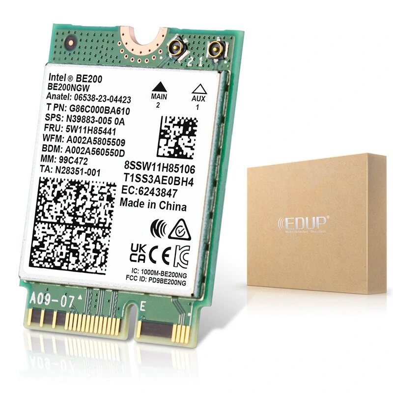 Özellikler:Marka: EDUPModel: WiFi 7 Intel BE200Arabirim: M.2 NGFF (M.2: CNVI ile uyumlu değil)Frekans Aralığı: 2.4 GHz, 5.8 GHz, 6 GHzKablosuz Hız: 2.4GHz: 574Mbps / 5.8GHz: 2400Mbps6GHz: 5800Mbpsbluetooth Sürümü: bluetooth 5.4Desteklenen İşletim Sistemleri: Windows 10 / 11 (64 bit)Özellikler:Tri-Band Wi-Fi: 8774Mbps hızında yıldırım hızında internet bağlantısı sunan 2.4G/5.8G/6GHz bantlarını destekler.Bluetooth 5.4: Güçlü ve güvenli kablosuz bağlantı sağlar.3. Yüksek Düzeyli Güvenlik: Daha iyi gizlilik koruması için WPA4 ile birlikte gelir.4. Uyumsuz Sistemler: Windows 7/8/8.1 ve IBM, Thinkpad, Lenovo, HP gibi bazı laptop markalarını desteklememektedir.5. Gelişmiş Uyumluluk: Samsung, Dell, Sony, Asus, MSI, Clevo, Terransforce, Hasee dizüstü bilgisayar modelleriyle uyumlu olarak en iyi şekilde çalışır.Paket İçeriği:1x EDUP WiFi 7 Intel BE200 Ağ Kartı1x Kullanıcı Kılavuzu1x Yükleme araçları
