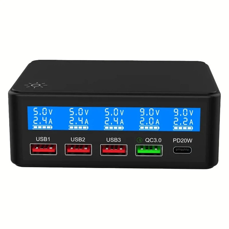 사양:제품명65W 5포트 USB PD 충전기색깔블랙/화이트인터페이스4USB-A+USB-C입력100-240V 50/60Hz 0.6A출력USB 포트 출력: 최대 5V~2.4A, 총 3개 포트 5V~6A.QC3.0 출력: 5V 3.0A/9V 2.0A/12V 1.5APD 출력: 5V 3A / 9V 2.22A / 12V 1.67A프로토콜PD QC3.0유형EU 플러그력65W크기L105*W77*H40mm특징: 1. 다중 포트: 이 충전기는 5개의 포트 (4개의 USB-A 및 1개의 USB-C)로 동시에 여러 기기를 충전할 수 있습니다.2. 고출력: 65W의 전력 등급으로 디바이스를 효율적으로 빠르게 충전할 수 있습니다.3. 유니버설 호환성: 이 충전기는 PD, QC3.0 프로토콜과 호환되며 다양한 기기에서 사용할 수 있습니다.4. 소형 디자인: L105 * W77 * H40mm의 소형 크기는 여행이나 작은 공간에서 사용하기에 완벽합니다.5. 듀얼 컬러 옵션: 충전기는 두 가지 색상 (블랙과 화이트)으로 다양한 심미적 취향을 충족시킬 수 있습니다.패키지에 포함된 것:1x 65W 5포트 USB PD 데스크탑 충전 스테이션 1x AC 케이블