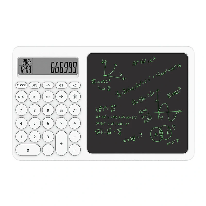 특징:다기능 계산기: 이 계산기는 기본적인 수학 계산뿐 아니라 필기 패드가 함께 제공됩니다. 필기 패드를 사용하여 그래프를 그리거나 복잡한 방정식 계산을 수행할 수 있습니다. 또한 온도,시간 및 캘린더 기능에 대한 추가 디스플레이가 있어 일상 일정을 더욱 잘 계획할 수 있습니다.사용 편의성: 계산기는 사용이 쉽고 필기 패드 콘텐츠는 단 하나의 키 스트로크로 지울 수 있어 새로운 계산 작업을 빠르게 시작할 수 있습니다. 또한,계산기에는 필기 패드 상의 쓰기 내용이 실수로 삭제되지 않도록하는 스위치 기능이 뒷면에 있습니다.다양한 장소에 적합합니다: 서 있는 디자인 덕분에이 계산기는 어떤 사무실 책상에도 놓을 수 있어 더욱 편리하게 사용할 수 있습니다. 또한 회의실,교실 또는 사무실과 같은 다양한 장소에 가져가기에 충분히 작고 컴팩트합니다.시간 절약: 필기 패드 덕분에 화면에 직접 계산 문제 또는 노트를 작성할 수 있어 시간을 크게 절약하며 더 편리한 계산 경험을 제공합니다.사양:이름: 계산기 필기판디스플레이 패널: LCD 패널+계산기크기: 사진 참조색상: 흰색구성품:1개 x 계산기 필기 태블릿1개 x 사용자 매뉴얼사용 방법비즈니스 계산기전원 공급원배터리재료LCD적용 가능한 배터리 유형배터리모델 번호계산기 작성 태블릿최대 자릿수10