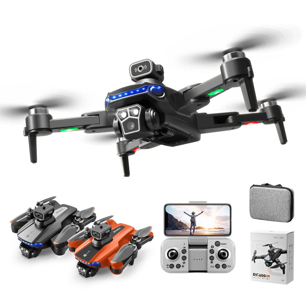 Spécifications:Article NO: RG600 PROCouleur: Noir, Orange (Optionnel)Gyroscope : 6 axesFréquence: 2.4GChaîne: 4CHMoteur : Brushless 1503 1700KVBatterie de quadricoptère : Batterie LiPo 3.7V 2000mAH (Inclus)Durée du vol : environ 15 minutesTemps de charge: 60-80 minutesMode émetteur: Mode 2 (manette à gauche)Pile de l'émetteur : 3 x Pile AA (Non inclus)Distance de contrôle à distance: Environ 100m (aucune interférence)FPV: 2.4G WiFiDistance de transmission de l'image : 40-50m (sans interférence)Caméra: Caméra double 720P (Caméra réglable par émetteur à 90°)Video Resolution: 1920*1080Photo Resolution: 4096*2160Taux de rafraîchissement : 25fpsSystème d'évitement des obstacles : Évitement des obstacles infrarougeAPP: HFun PIusVersion du système de l'appareil mobile: IOS 8.0 et supérieur, Android 4.0 et supérieurTaille maximale du téléphone compatible : 5,5 poucesTaille du quadricoptère: 180 x 125 x 90 mm (pliable)280 x 260 x 90mm (non pliable)Poids au décollage : 196g (batterie 41g)Taille de l'emballage : 250 x 95 x 200 mmPoids du colis : 610 gFonctionnalités:- Bras pliables, petite taille, facile à transporter.L'appareil photo double grand angle 4K HD intégré permet de prendre des photos et des vidéos haute définition à large spectre.Avec la fonction wifi, vous pouvez vous connecter à l'application, au système APK pour prendre des photos, des vidéos et diffuser en temps réel l'image de la caméra du téléphone.- Détection automatique à 360° de l'évitement infrarouge des obstacles