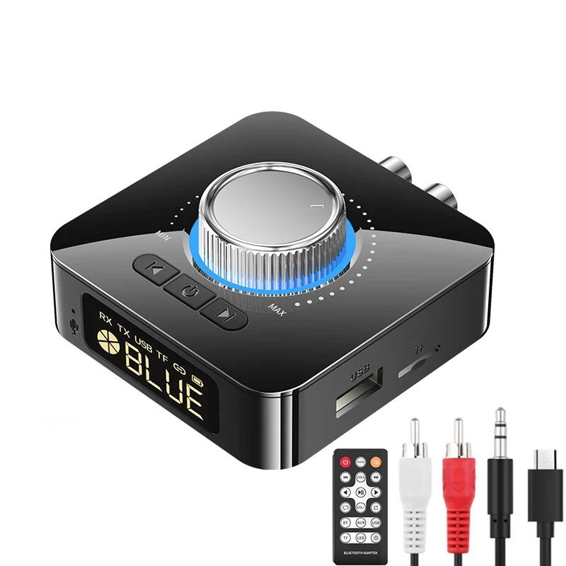 Nome del prodotto:Adattatore Bluetooth con display digitaleVersione del prodotto:Standard/RemotoModello del prodotto:M5Versione Bluetooth:bluetooth V5.0Chip:AC6951CBatteria:3,7V / 400mAh (UN38.3)Utilizzo del tempo:Ascolta musica per circa 6-8 ore e resta in attesa per 30 giorniGamma di trasmissione:10m (senza barriere)Interfaccia:3,5 mm AUX/2RCA/USB/TFParametro di input:DC 5V-2.1A(MAX)Protocollo di supporto:A2DP/AVRCPDimensioni del prodotto:circa 73*67*30 mmUtilizzando il metodo:Guidare liberamenteColore prodotto:NeroMateriale del prodotto:ABS + PC antincendio ad alta resistenzaPeso del prodotto:Versione standard: 68gFunzioni di base:ricezione bluetooth, avvio bluetooth, riproduzione U-disk, riproduzione della scheda tf, telecomando infrarossi, operazione dei tastiDispositivi supportati:Tutti i tipi di altoparlanti, computer desktop, laptop, TV, amplificatore di potenza, proiettore Pacchetto incluso:1* Trasmettitore ricevitore bluetooth M51* Cavo RCA a AUXCavo AUX 1* a AUXCavo di tipo C1* Manuale utente1* Telecomando