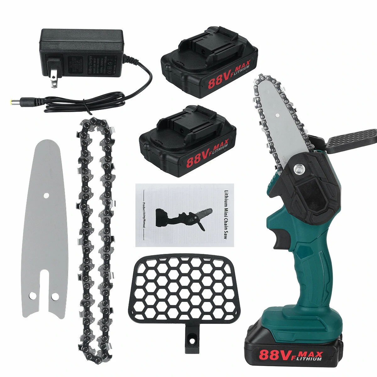 Fonctionnalité:- Liaison sans fil: coupe facile en extérieur- Moteur en cuivre pur: 1200W, puissance puissante, longue durée de vie- Design de la poignée : prise en main confortable, conforme à la conception du corps humain- Alimentation par batterie lithium : dites adieu aux problèmes de recherche d'une source d'alimentationFacile à utiliser : pas besoin de démonter, tournez la vis pour ajuster la tension de la chaîneChaîne de guide de haute qualité : tranchante, résistante à l'usure, durcie en profondeur pour une résistance à l'usure accrue, coupe fluideDissipation efficace de la chaleur : la conception de multiples sorties d'échappement sur le fuselage peut empêcher efficacement la surchauffe- Fuselage léger : léger et portable, manipulation d'une seule main, confortable à tenir, non fatigant de tenir pendant longtemps- Quatre fonctions de protection intelligentes: protection contre les surintensités, protection contre les surtensions, protection contre la surchauffe, protection de charge et de décharge, coupure automatique en cas de forte chaleurSpécification:NomScie à chaîne de 6 poucesMarqueDoersuppCouleur (option)Rouge / Noir / VertBranchez(Option)Prise UE / Prise USVoltage24VVitesse de la chaîne5M/SPuissance de sortie1200WChaîneQRéglage rapideCharge rapide1,5 (3) heuresTension nominale100-240V ACMotor DrivePvotre moteur en cuivreMode d'alimentationLbatterie au lithiumPoids du colisEnviron 688g / 1,5lbLongueur totale de la chaîneEnviron 15,24 cm / 6Longueur de la plaqu