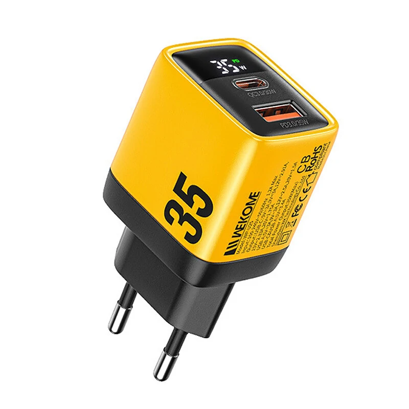 Özellikler:MarkaWEKOMERenkSarıMalzemePCBoyut40*32*80mmAğırlık62gArayüzUSB-C+USB-AGiriş100-240V~50/60Hz 1.2A MaxÇıktıUSB-A: 5V-3A/9V-3A/12V-2.5A/20V-1.5AUSB-C: 5V-3A/9V-3A/12V-2.91A/15V-2.33A/20V-1.75A;USB-C ve USB-A: 5V-3.4AProtokollerPD3.0 QC2.0 3.0 4+ SCP FCP AFC PPS BC1.2 Apple2.4ATipAB FişiGüç35WÖzellikler: 1. Evrensel Uyumluluk: WEKOME şarj cihazı, USB-C ve USB-A portlarına sahip olmasıyla akıllı telefonlar, tabletler, dizüstü bilgisayarlar ve daha fazlası dahil olmak üzere birçok cihazla uyumlu çalışır.2. Hızlı Şarj Teknolojisi: Güç Delivery 3.0 ve Quick Charge 2.0/3.0/4+ desteği sayesinde bu şarj cihazı, cihazlarınızın hızlı ve verimli bir şekilde şarj olmasını sağlayarak bataryalarını hızlı bir şekilde tamamen doldurmanıza olanak sağlar.3. Çoklu Koruma: Şarj cihazı aşırı akım koruması, aşırı voltaj koruması, kısa devre koruması ve sıcaklık kontrolü gibi çeşitli güvenlik özellikleriyle donatılmıştır, böylece hem şarj cihazının hem de cihazlarınızın güvenliğini sağlar.4. Kompakt ve Taşınabilir: WEKOME şarj cihazının kompakt boyutu ve hafif tasarımı seyahat için uygun, çantanızda veya cebinizde kolayca taşıyarak şarj etmenizi sağlar.EU Takı: Şarj cihazı, Avrupa ülkelerinde kullanılmak üzere bir EU takı ile birlikte gelir.Paket içeriği:1x Şarj cihazı